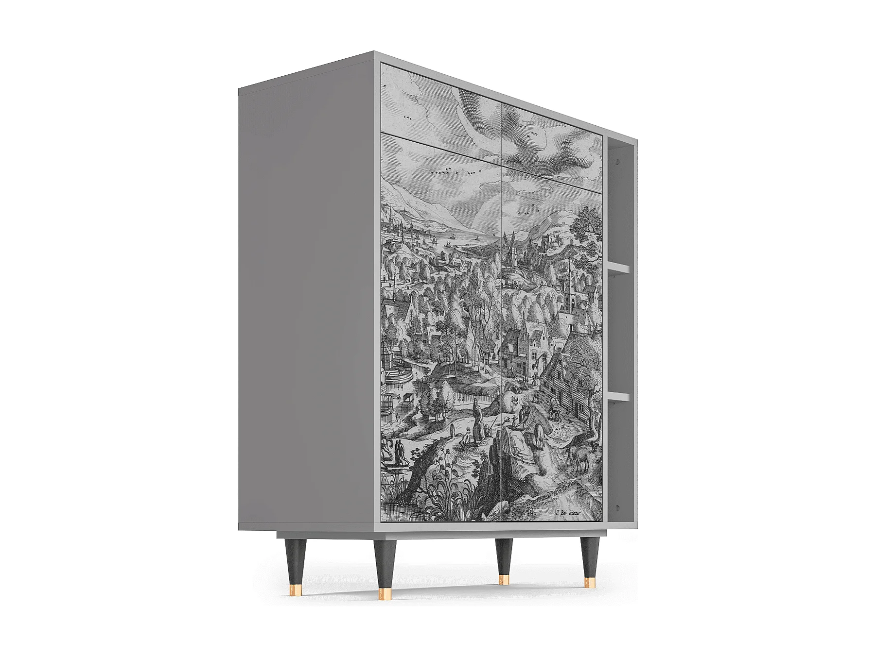 Kredens - 96х110х41 cm - BS6 - Landscape, Szary