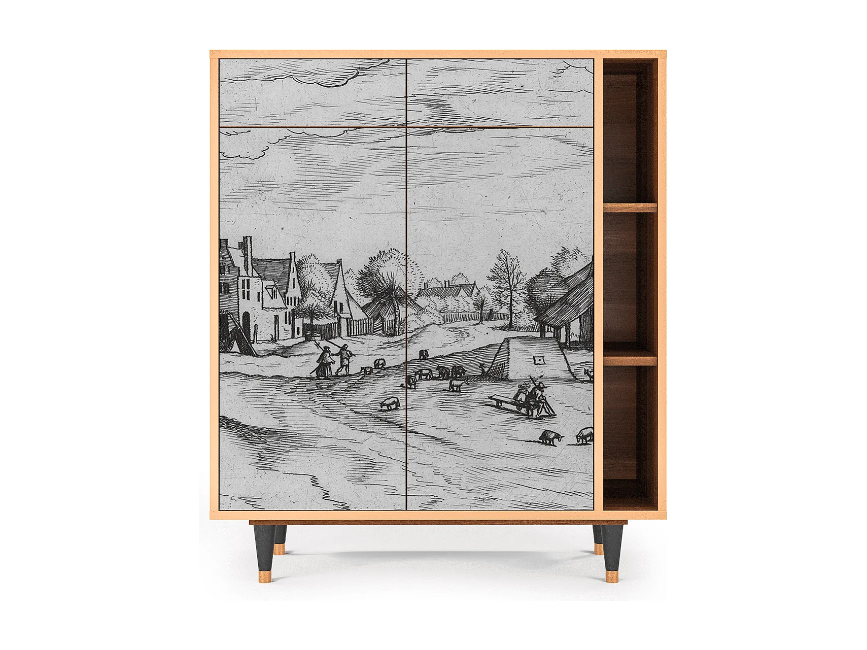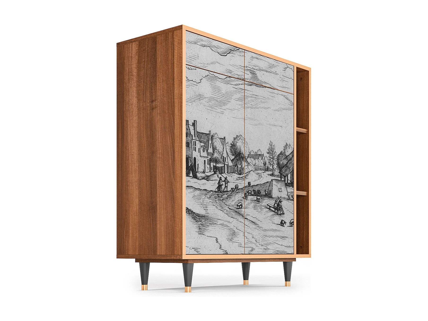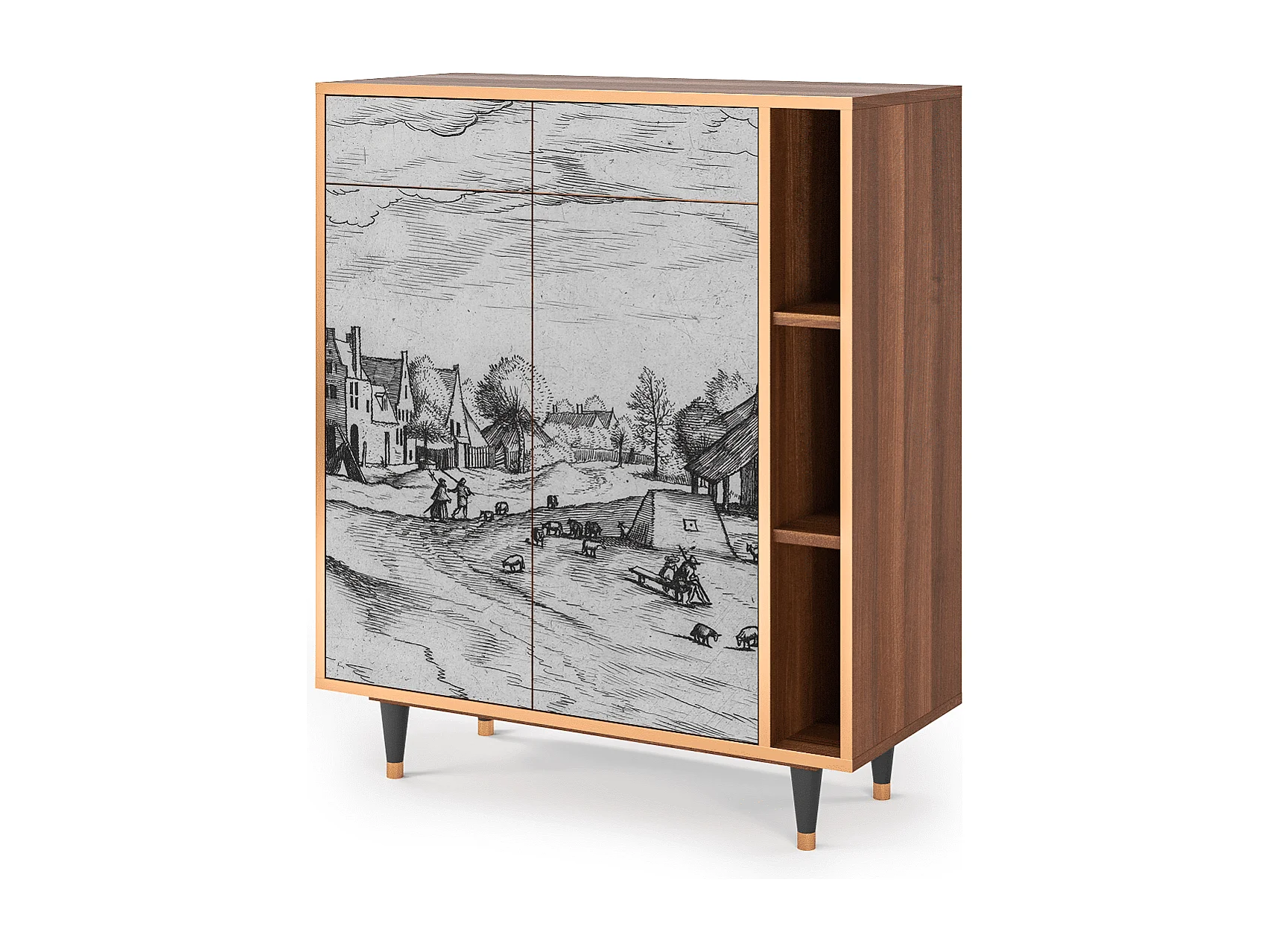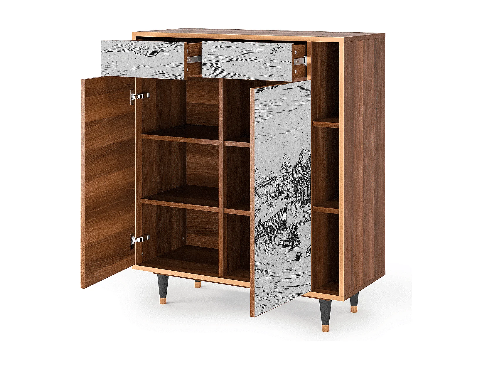 Kredens - 96х110х41 cm - BS6 - Geometric Madness, Orzech