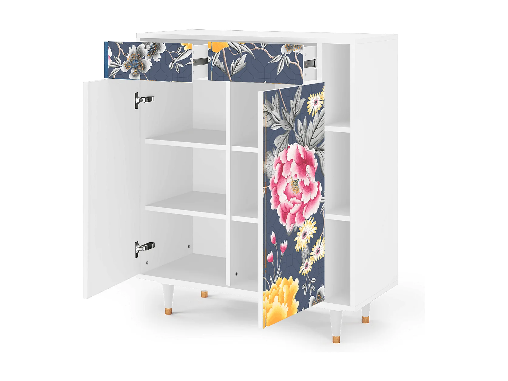 Kredens - 96х110х41 cm - BS6 - Dark Flower Bed, Biały