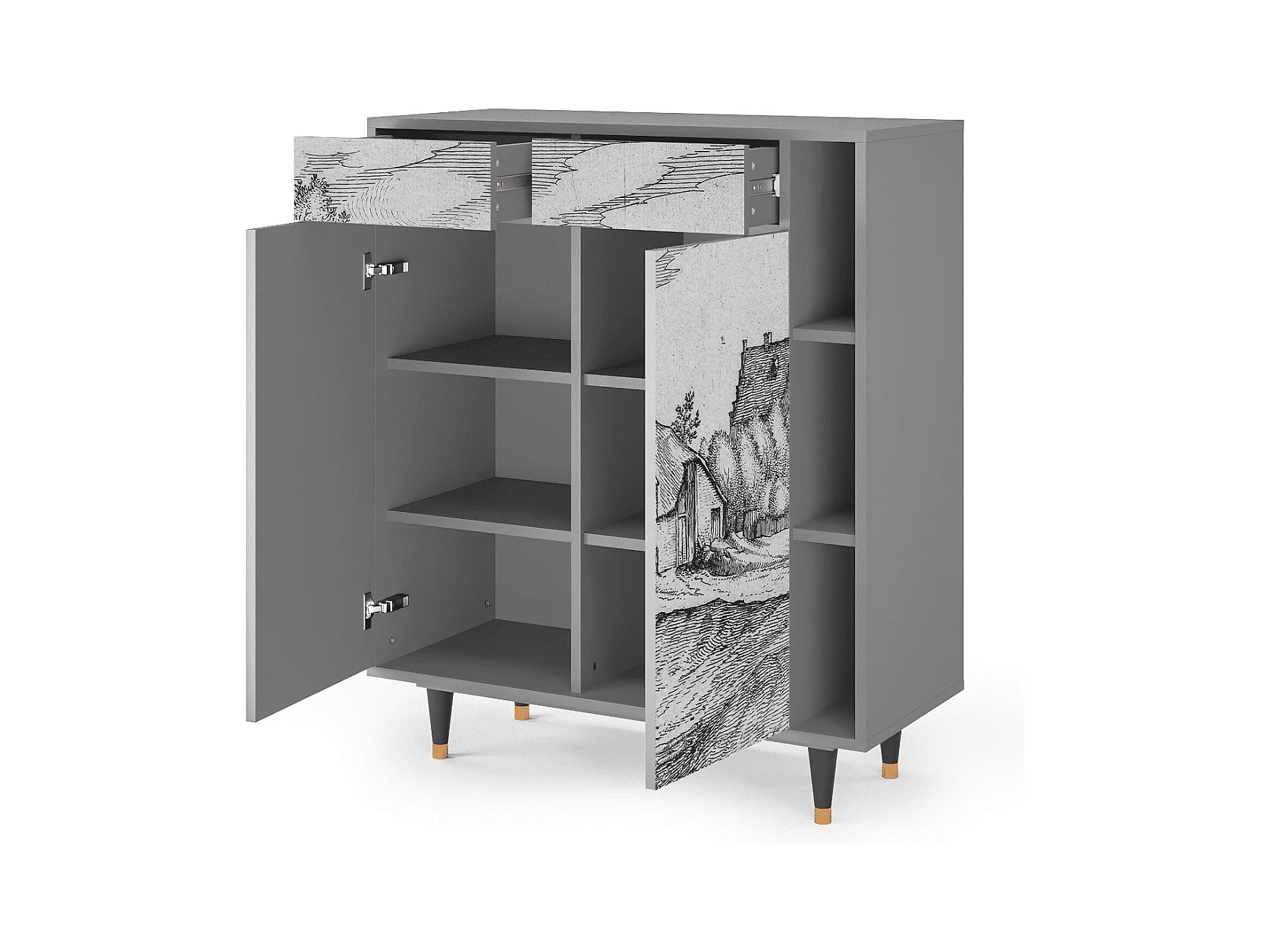 Kredens - 96х110х41 cm - BS6 - Farms in a Village, Szary