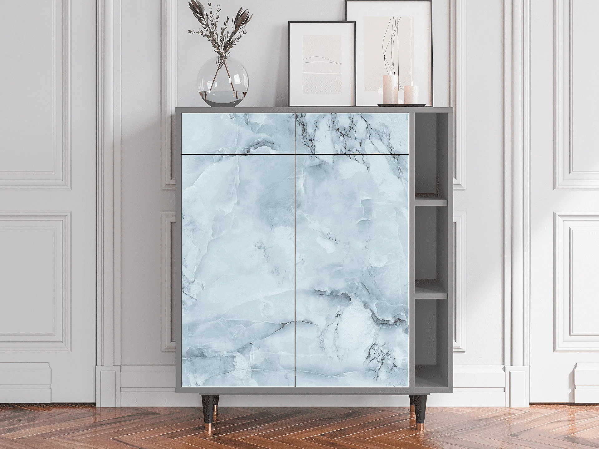 Kredens - 96х110х41 cm - BS6 - Raven Marble, Antracyt