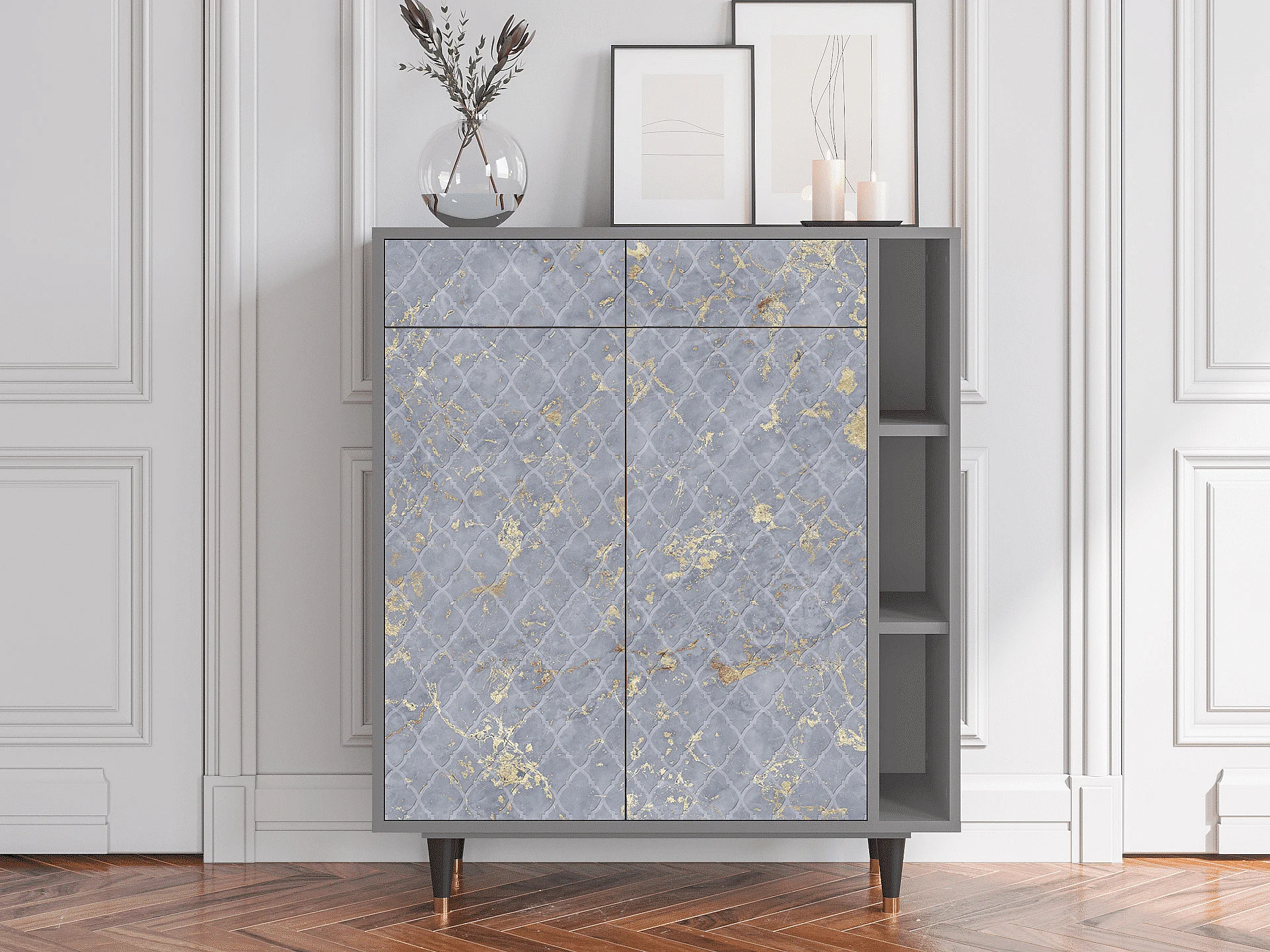Kredens - 96х110х41 cm - BS6 - Rose Honeycomb, Szary