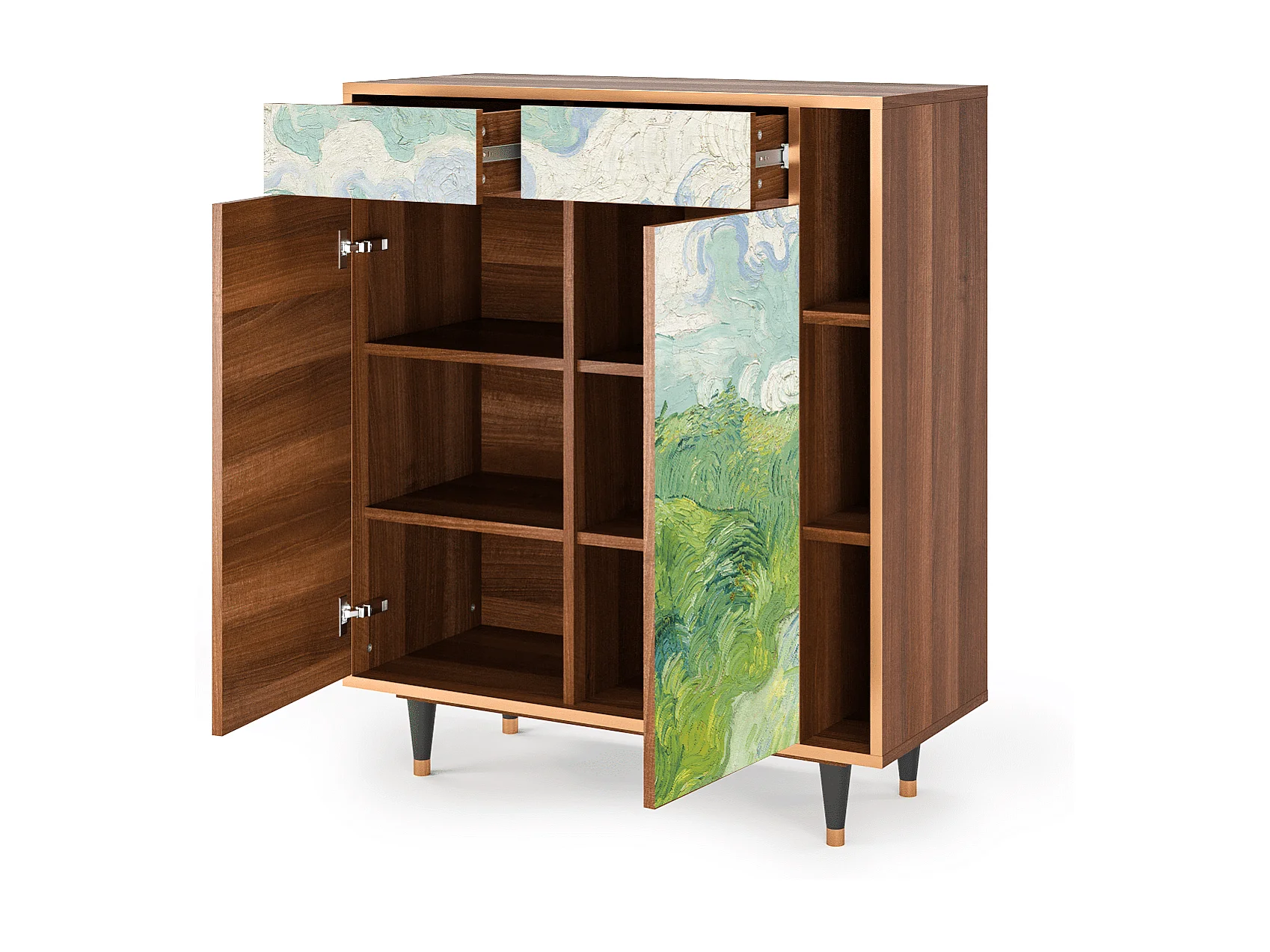 Kredens - 96х110х41 cm - BS6 - Green Wheat Fields, Orzech