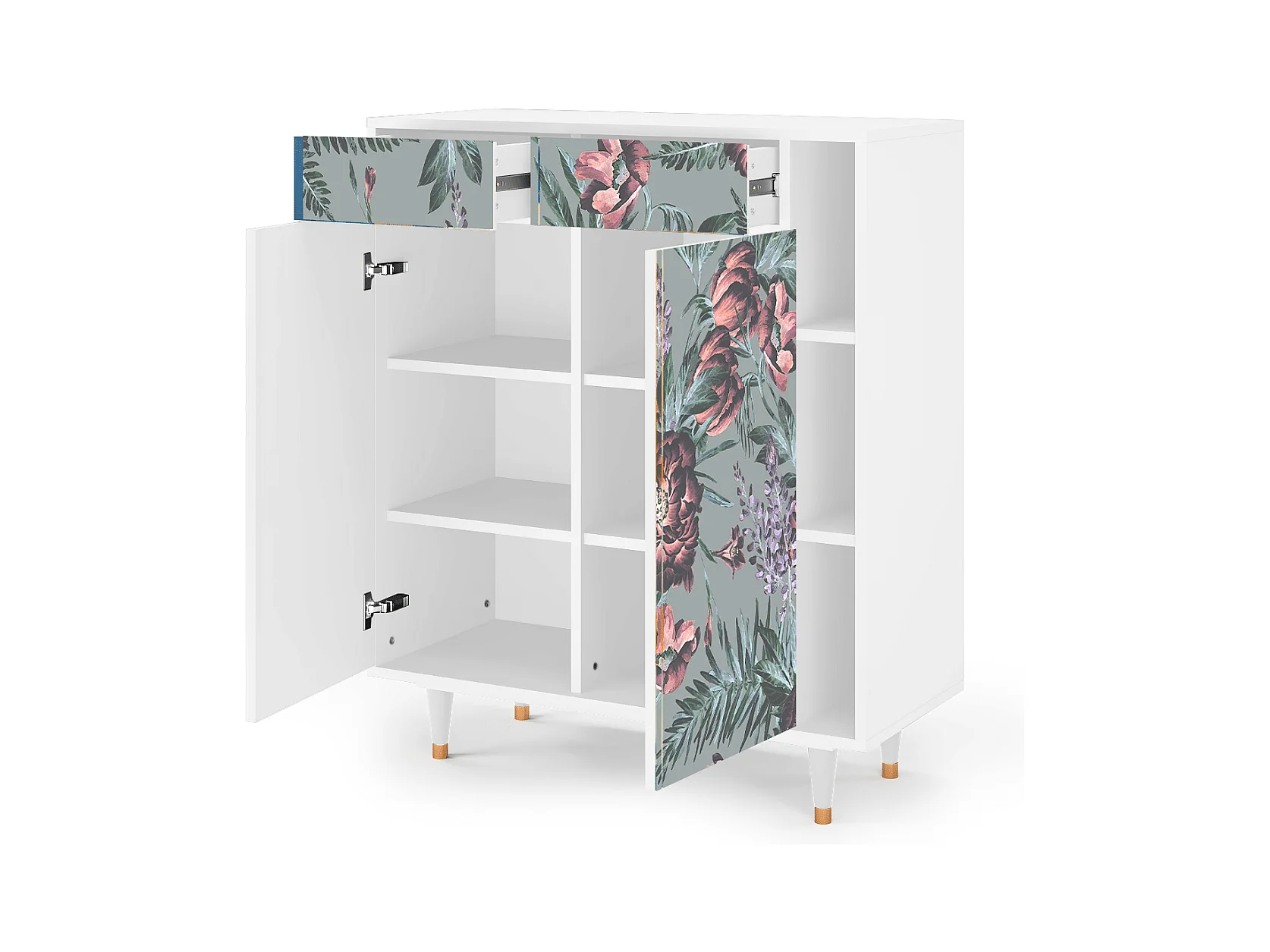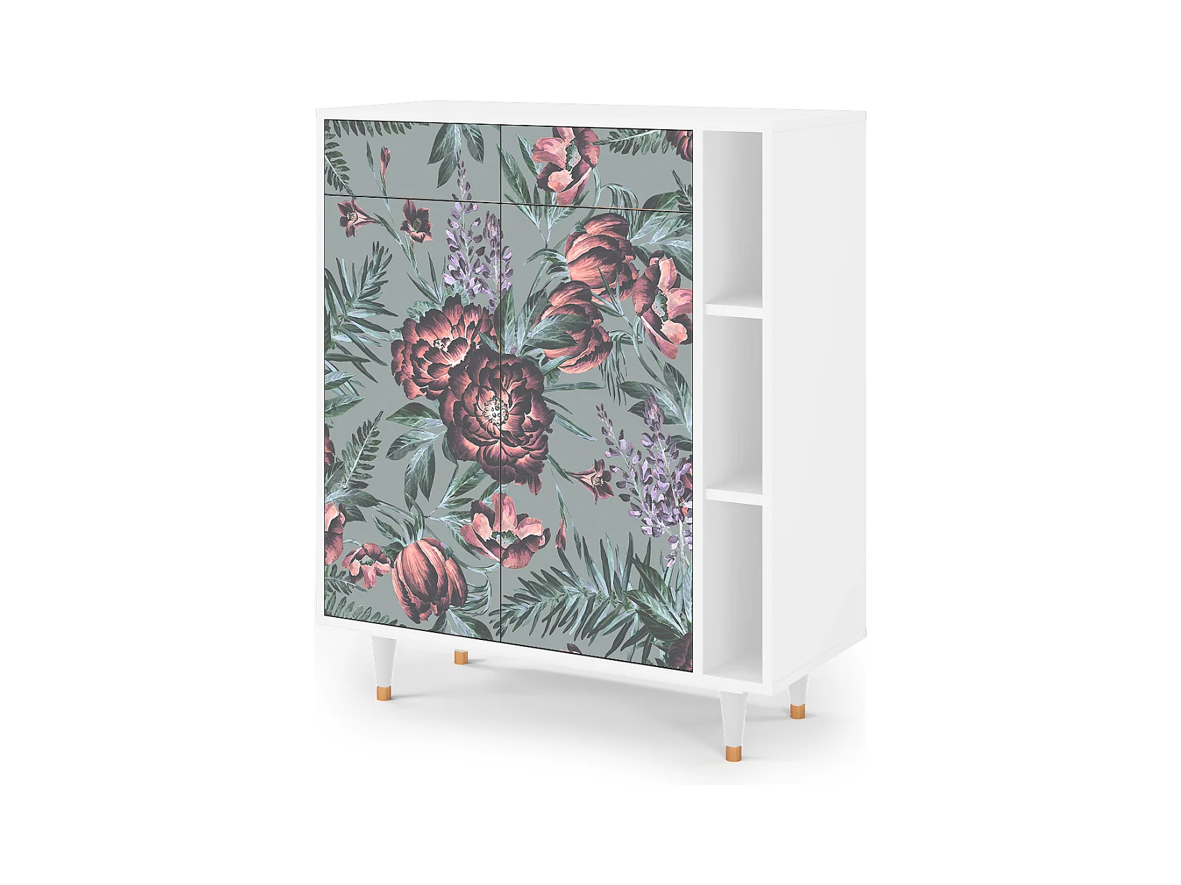 Kredens - 96х110х41 cm - BS6 - Light Peonies, Biały