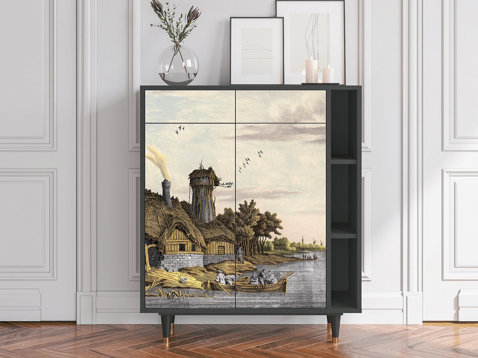 Kredens - 96х110х41 cm - BS6 - Mill along a River, Antracyt