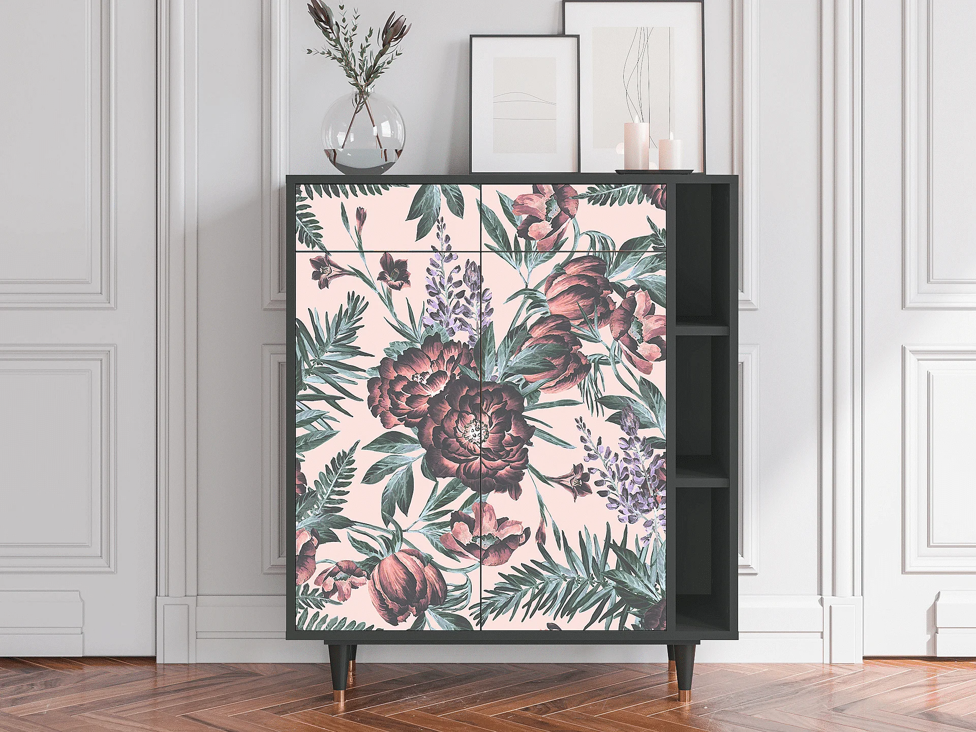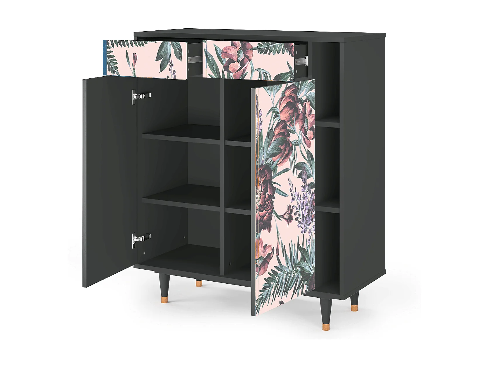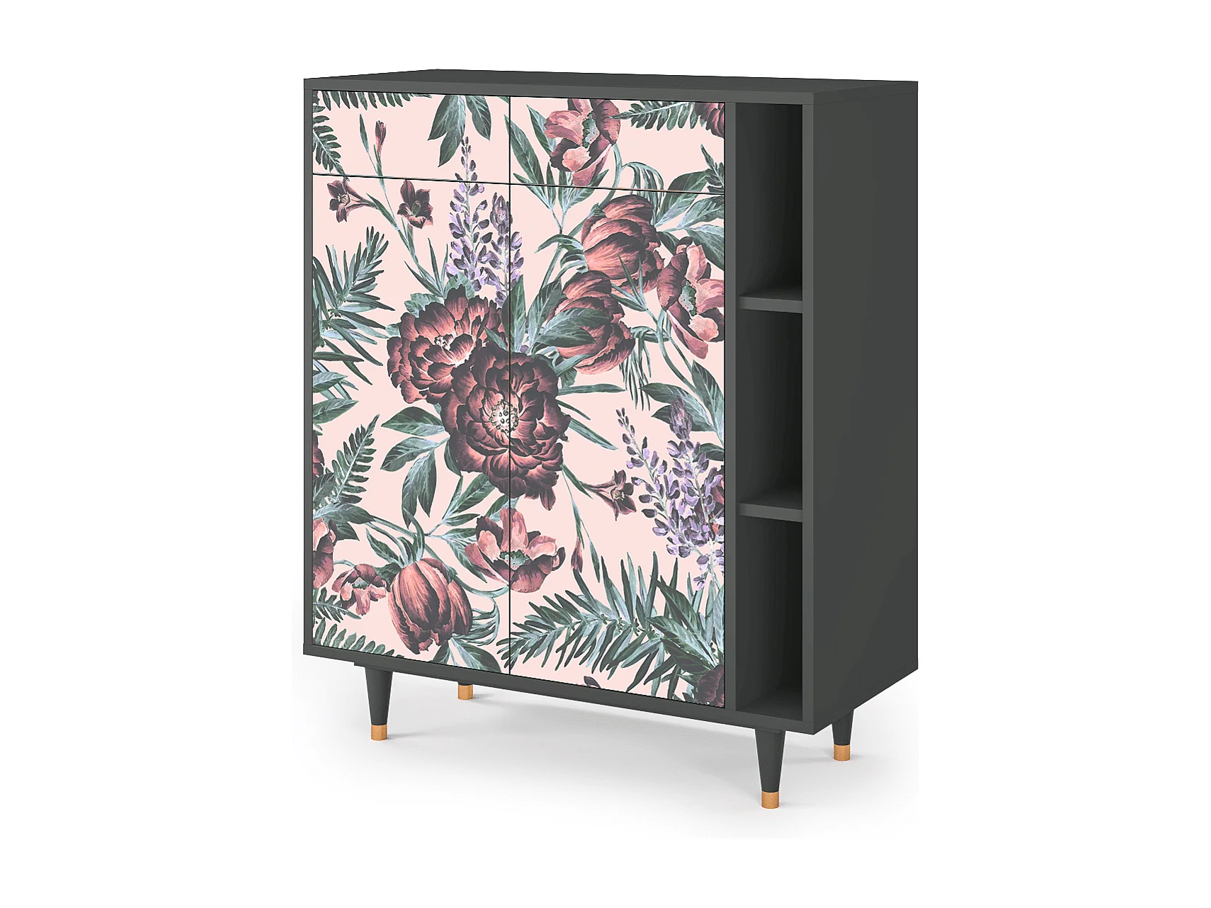 Kredens - 96х110х41 cm - BS6 - Peach Peonies, Antracyt