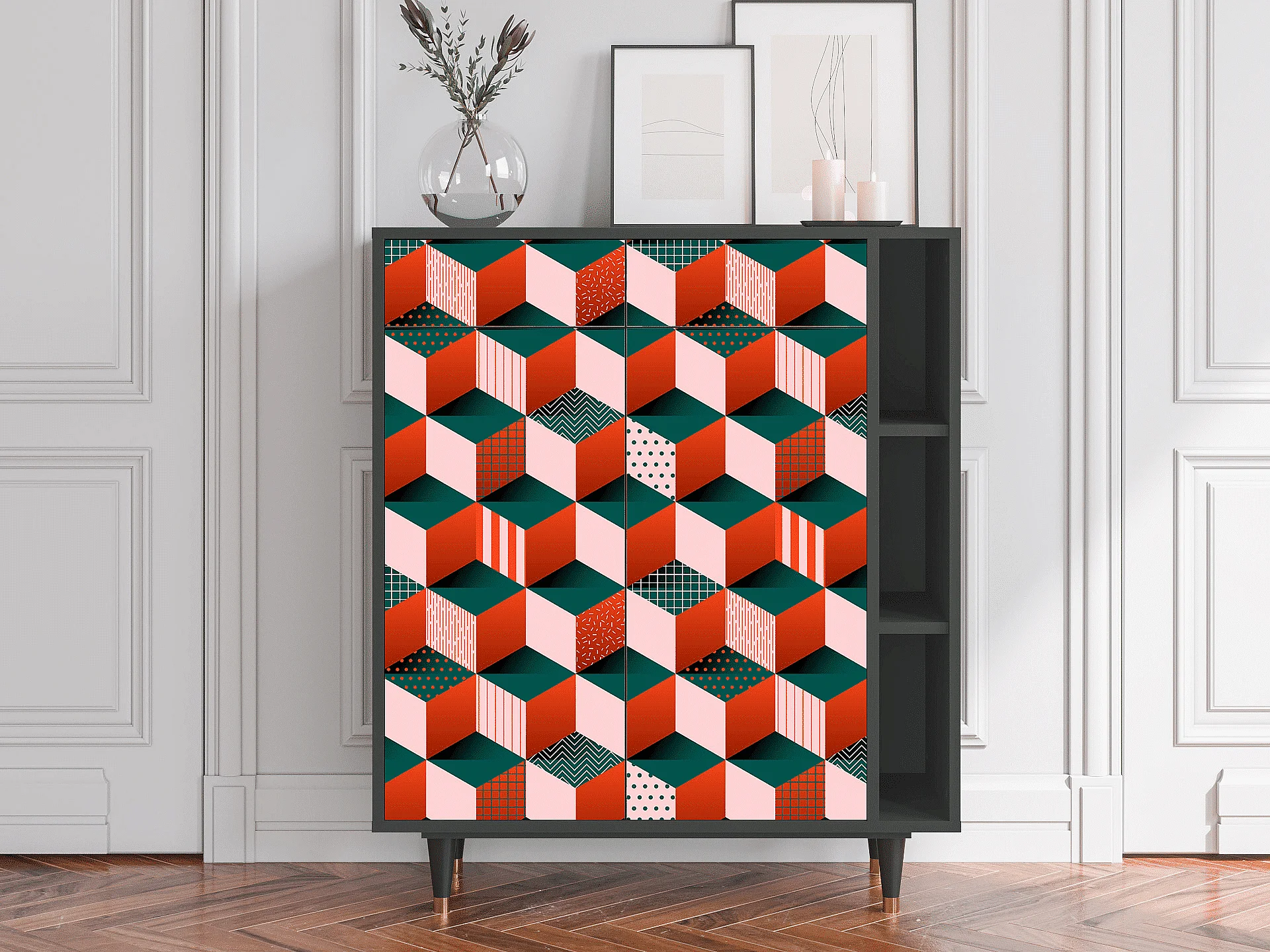 Kredens - 96х110х41 cm - BS6 - Turquoise Geometry, Szary
