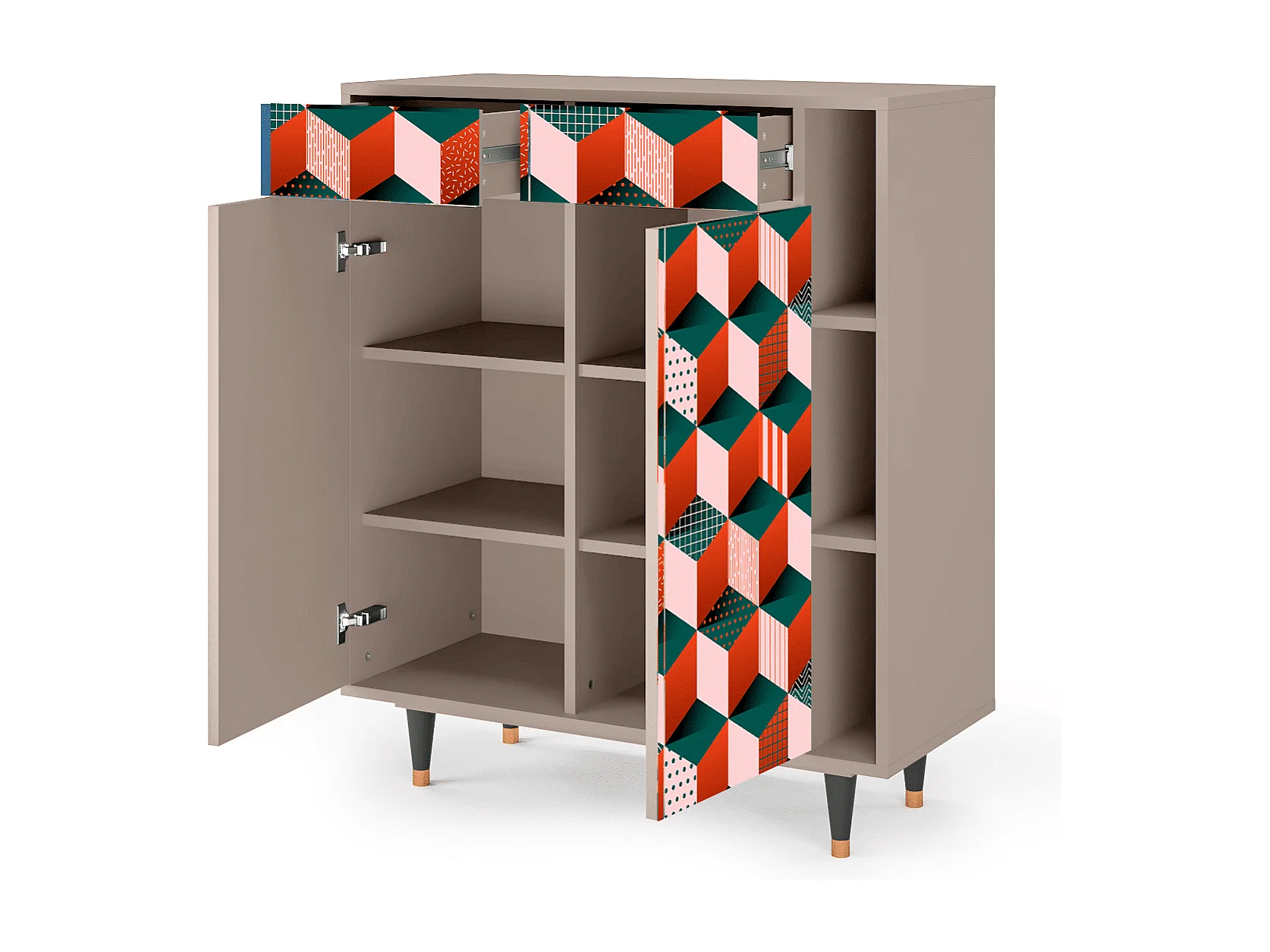 Kredens - 96х110х41 cm - BS6 - Turquoise Geometry, Latte