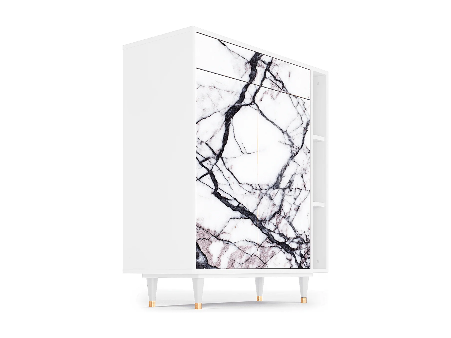 Kredens - 96х110х41 cm - BS6 - Raven Marble, Biały