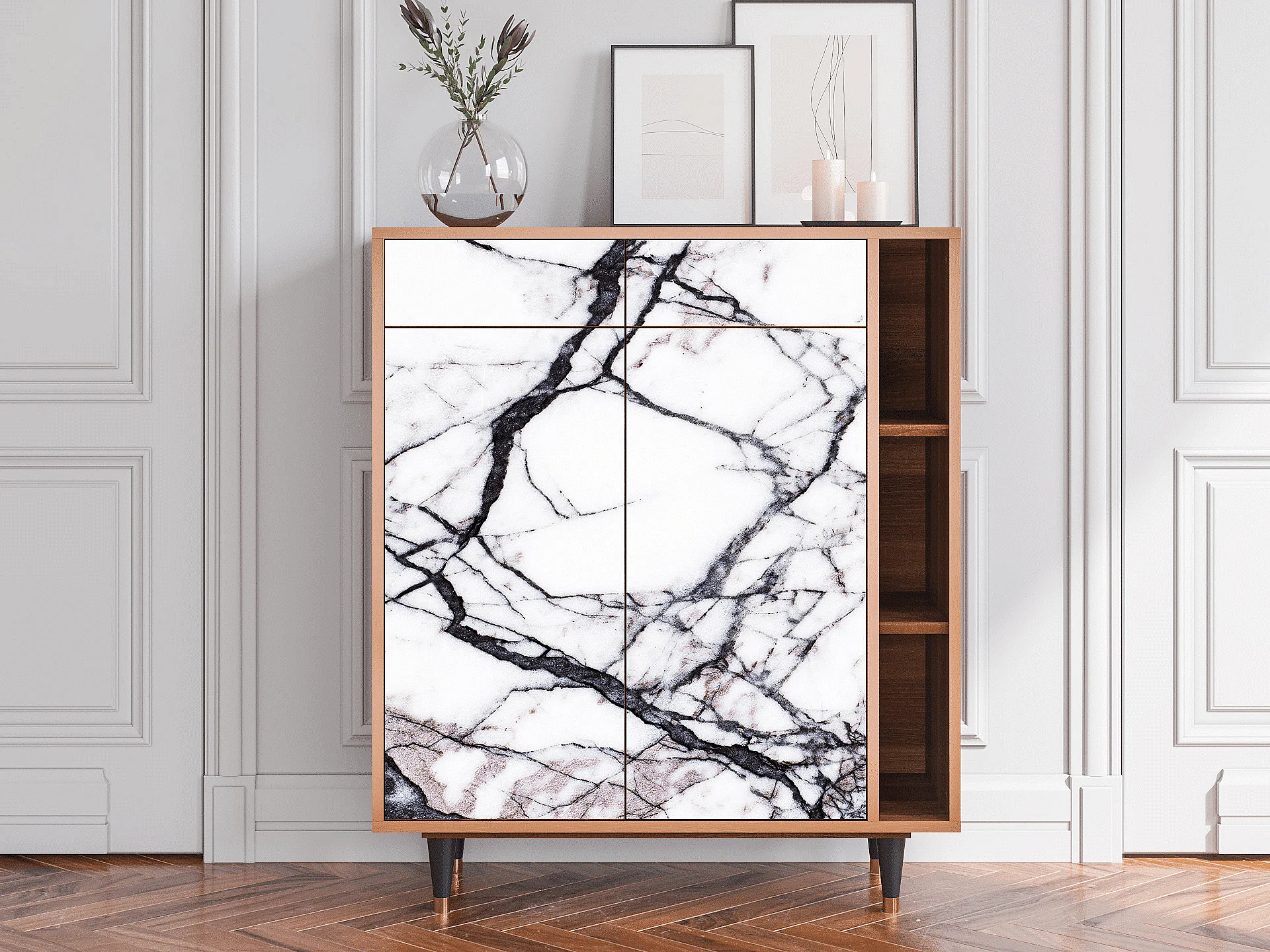 Kredens - 96х110х41 cm - BS6 - Raven Marble, Orzech