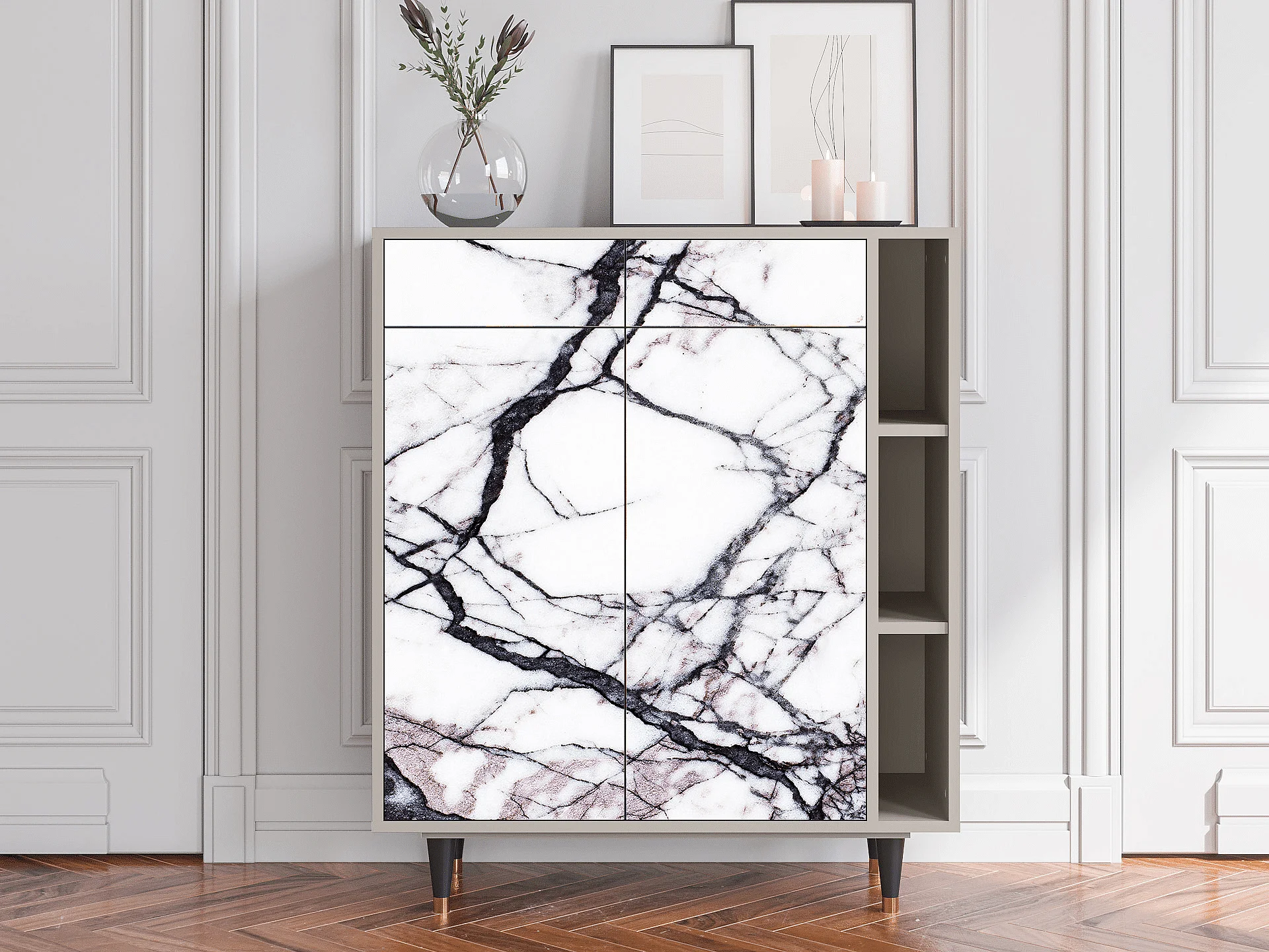 Kredens - 96х110х41 cm - BS6 - Raven Marble, Piaskowy