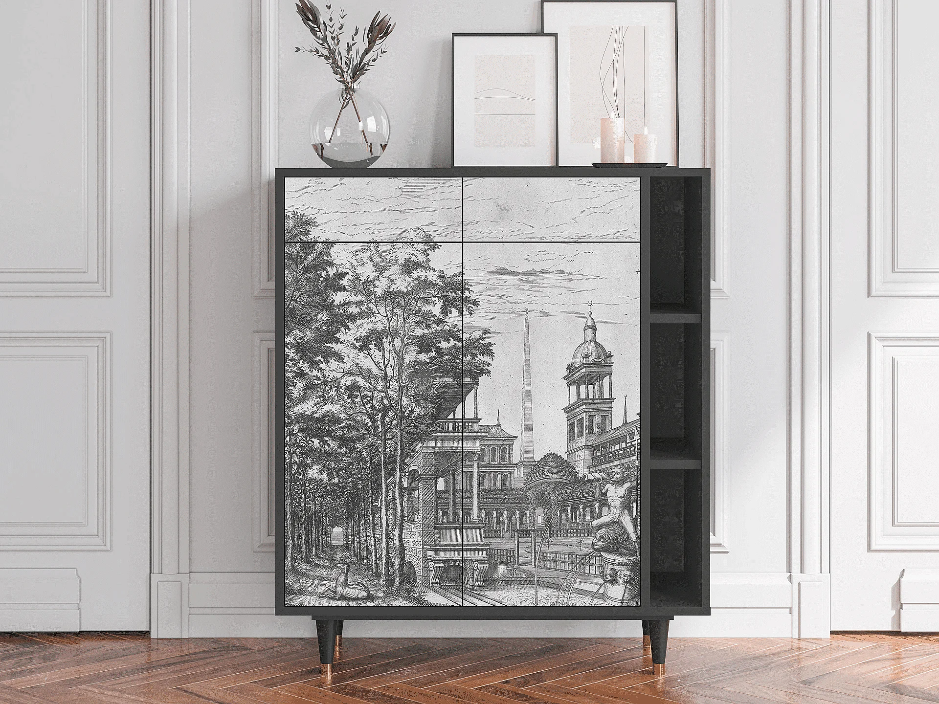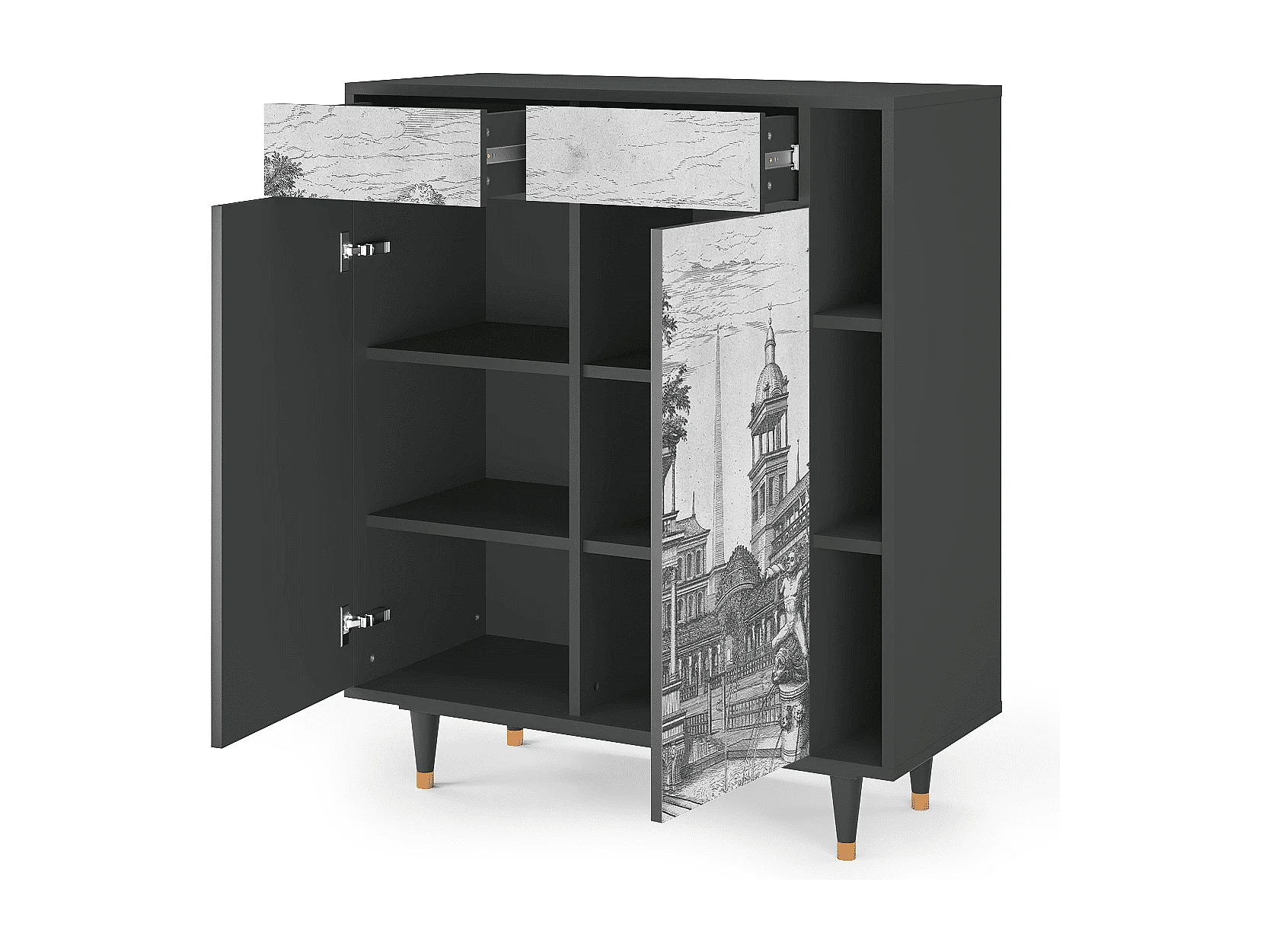 Kredens - 96х110х41 cm - BS6 - View of the Piazza, Antracyt
