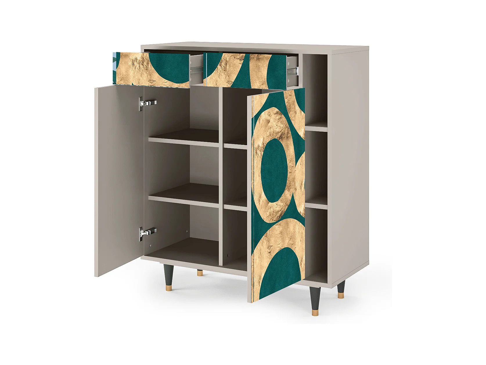Kredens - 96х110х41 cm - BS6 - Turquoise Geometry, Piaskowy