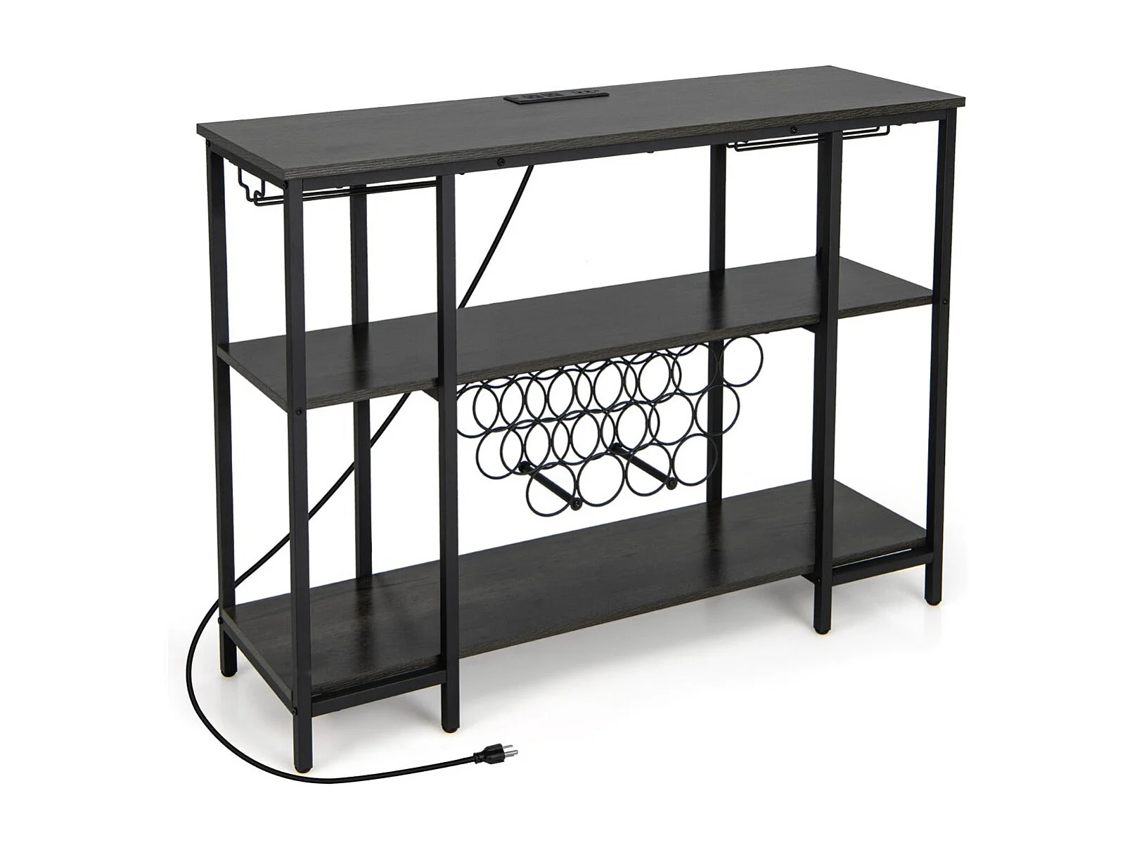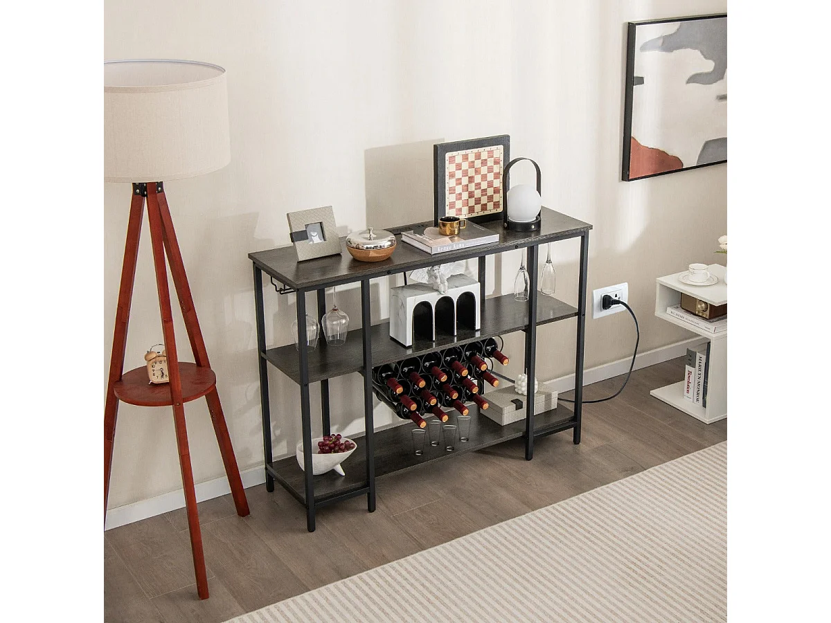 Kredens barowy z regałem na wino i stacją ładującą – 113 x 35 x 85 cm – szary