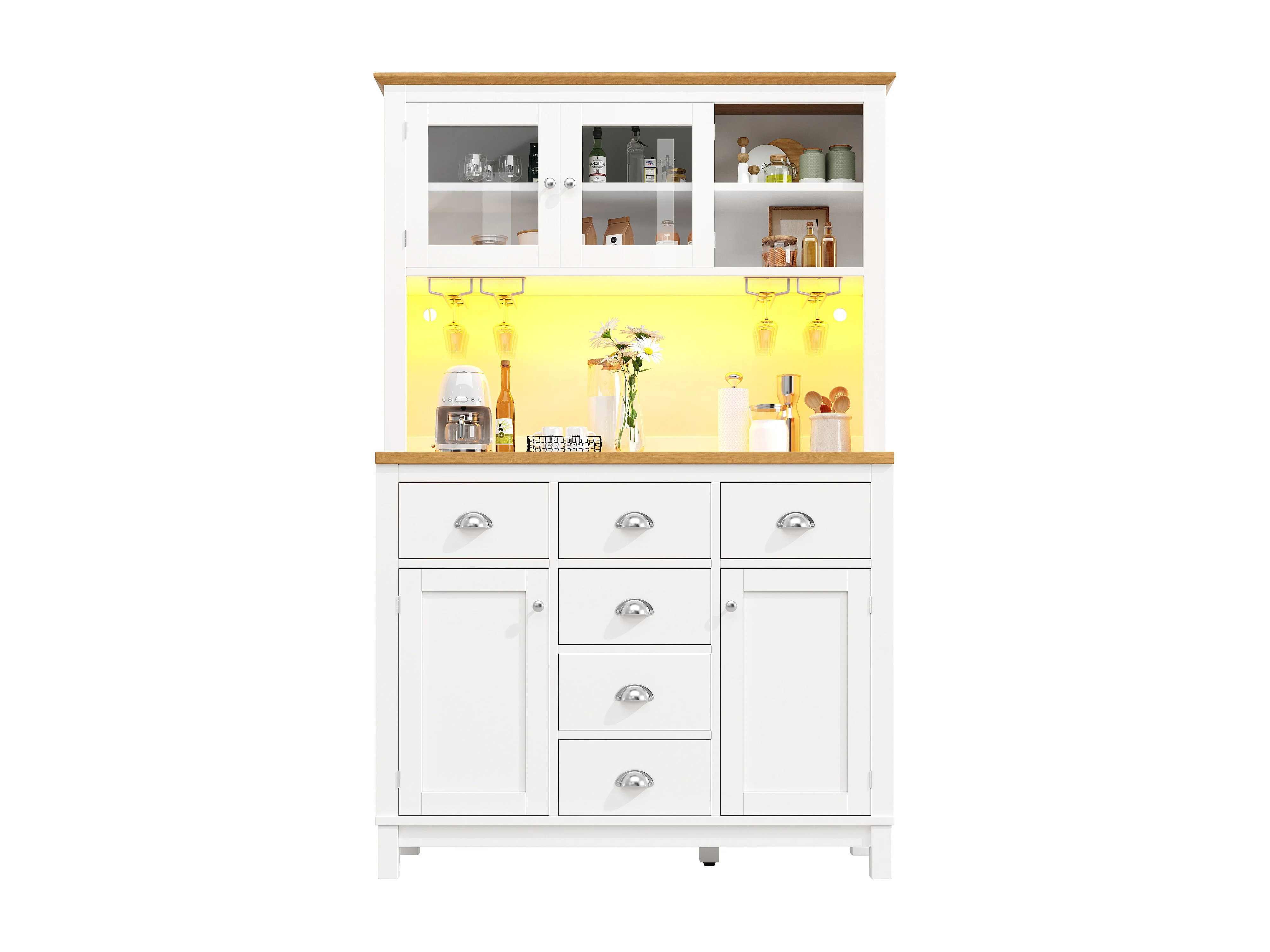 Kredens kuchenny w stylu rustykalnym - 100 x 40 x 180 cm - z 6 drzwiami + 2 szufladami + diodami LED + gniazdkiem elektrycznym - MDF - biały