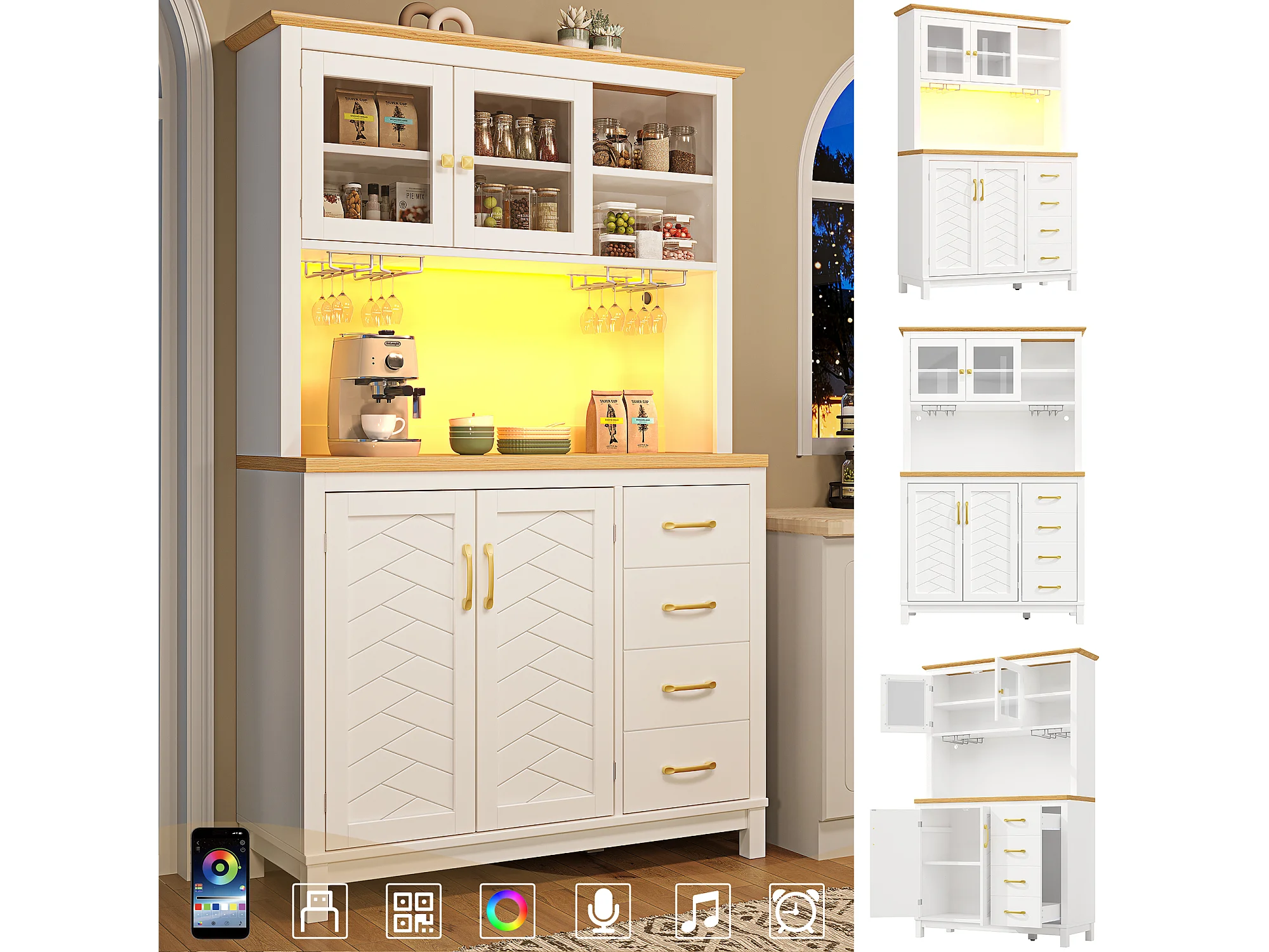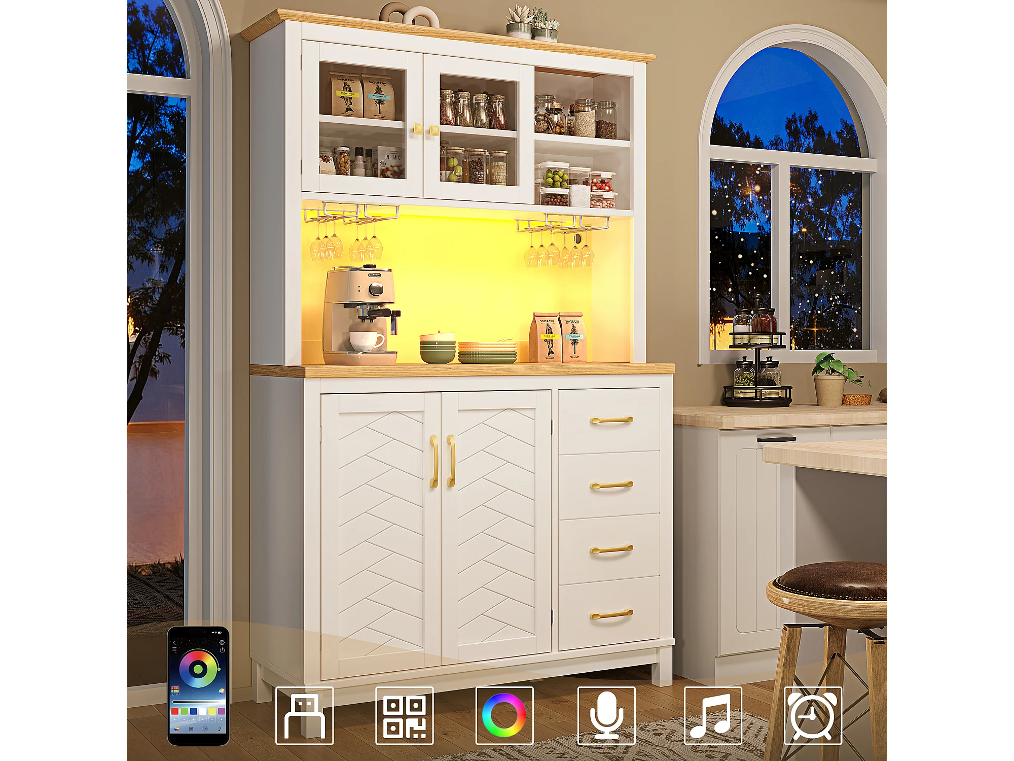 Kredens kuchenny w stylu rustykalnym - 104 x 40 x 180 cm - z drzwiami, diodami LED, półkami i szufladami - płyta MDF - biały