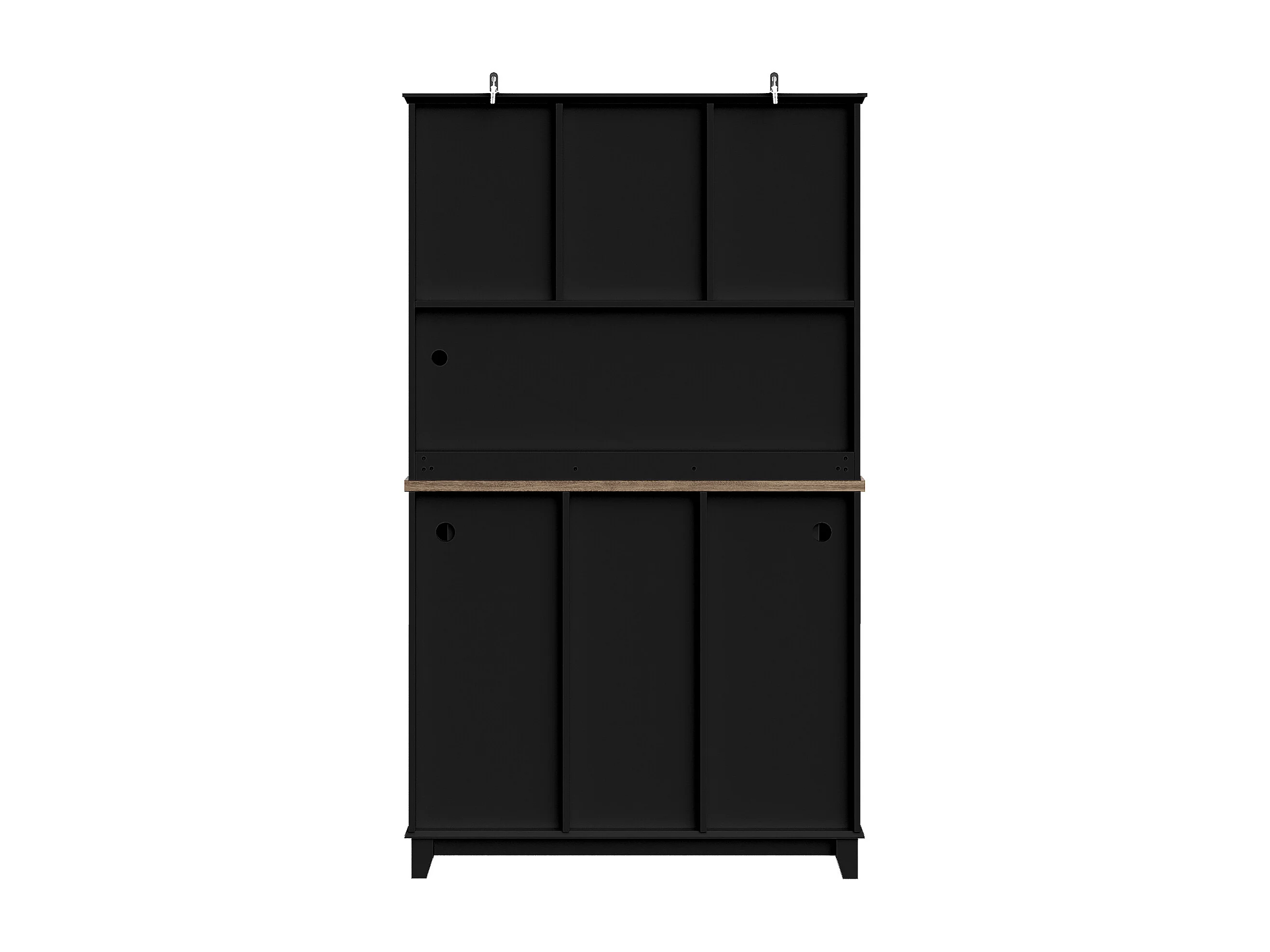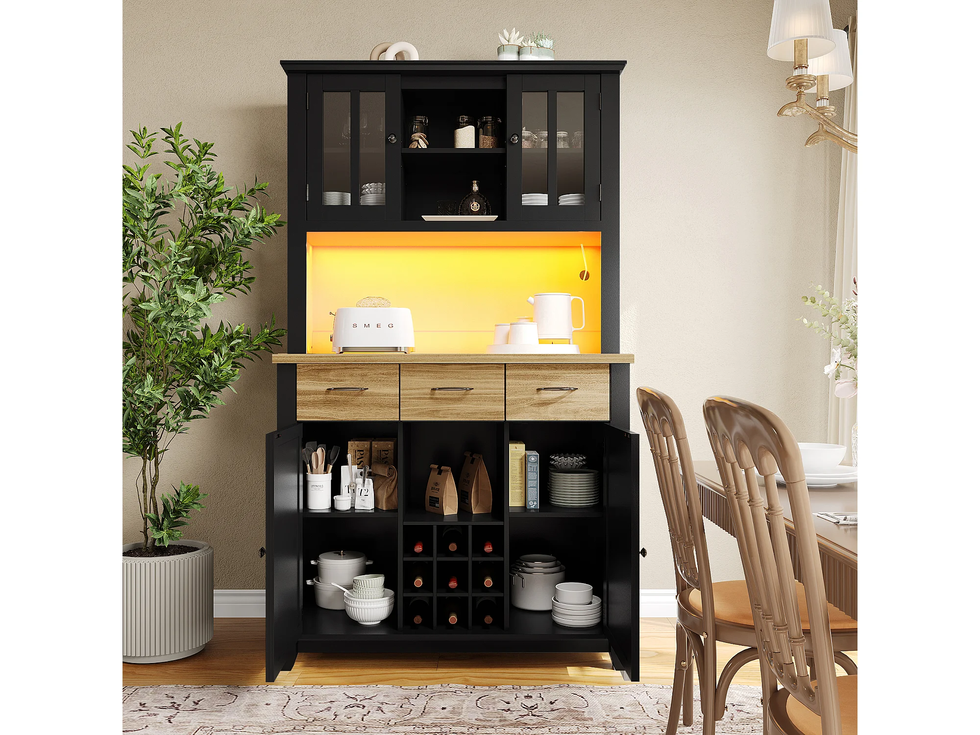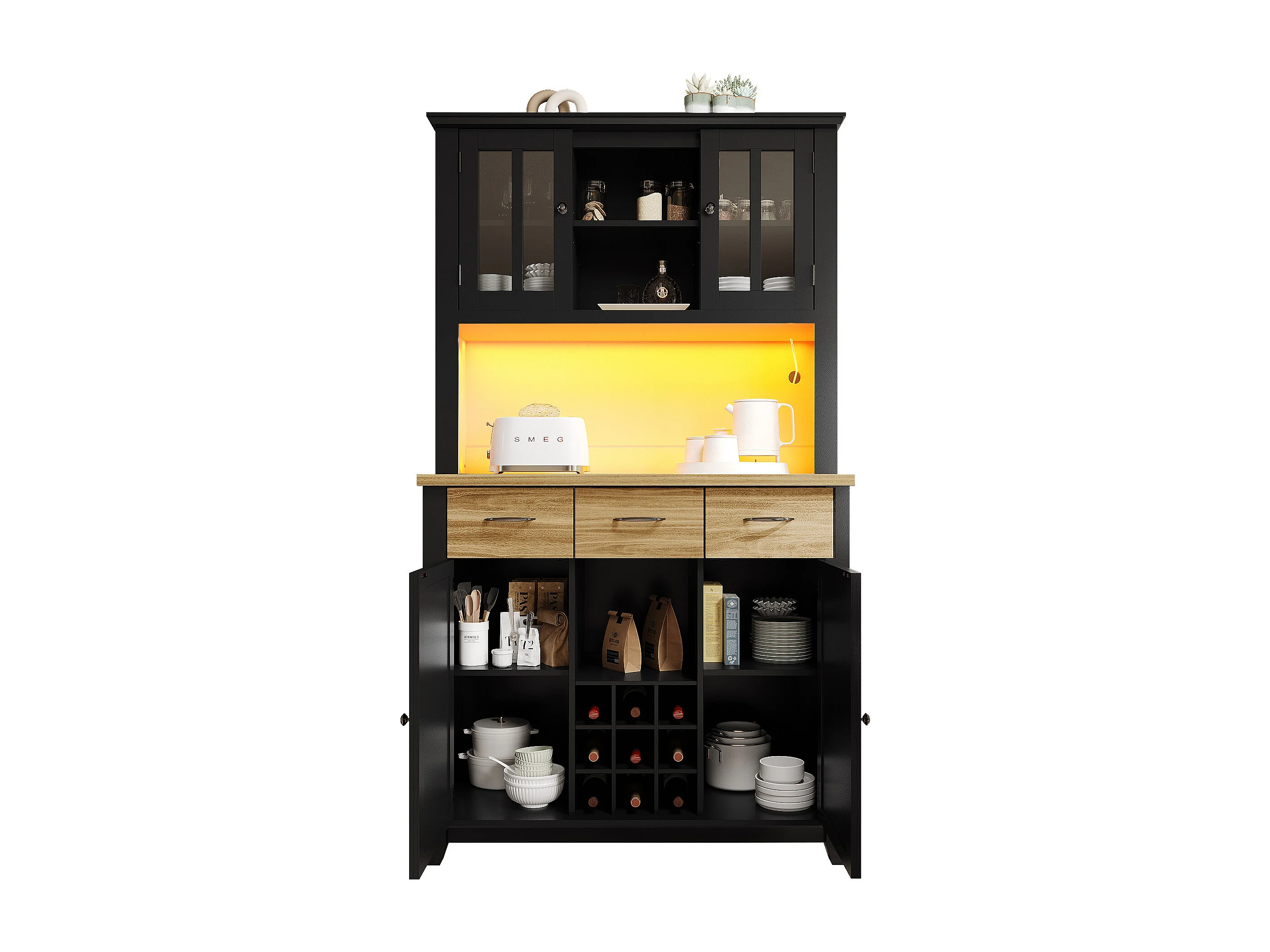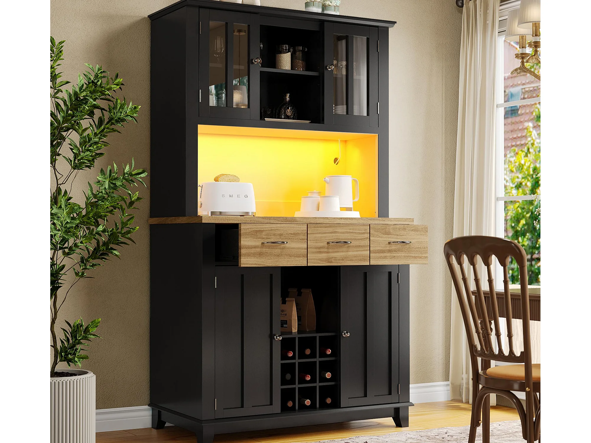 Kredens kuchenny z oświetleniem LED - 6 drzwi, 3 szuflady i 3 otwarte przegródki - Czarny
