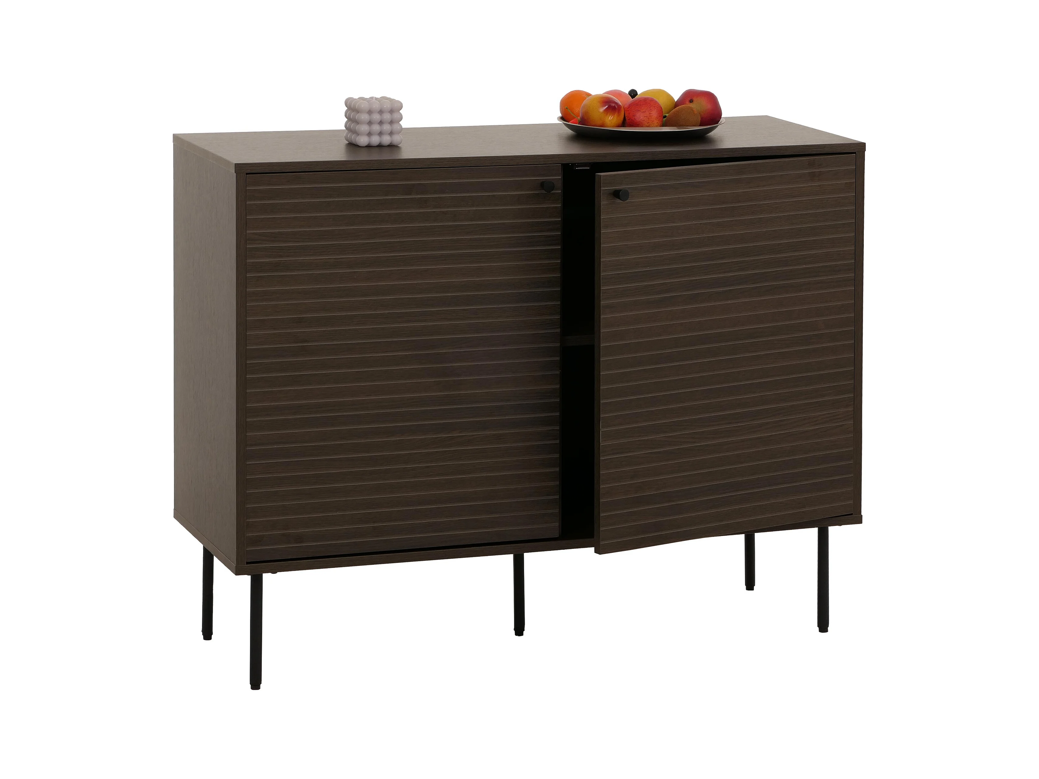 Nowoczesny highboard 120 cm – wysoka witryna do salonu z przeszkleniami, kolor wotan mat