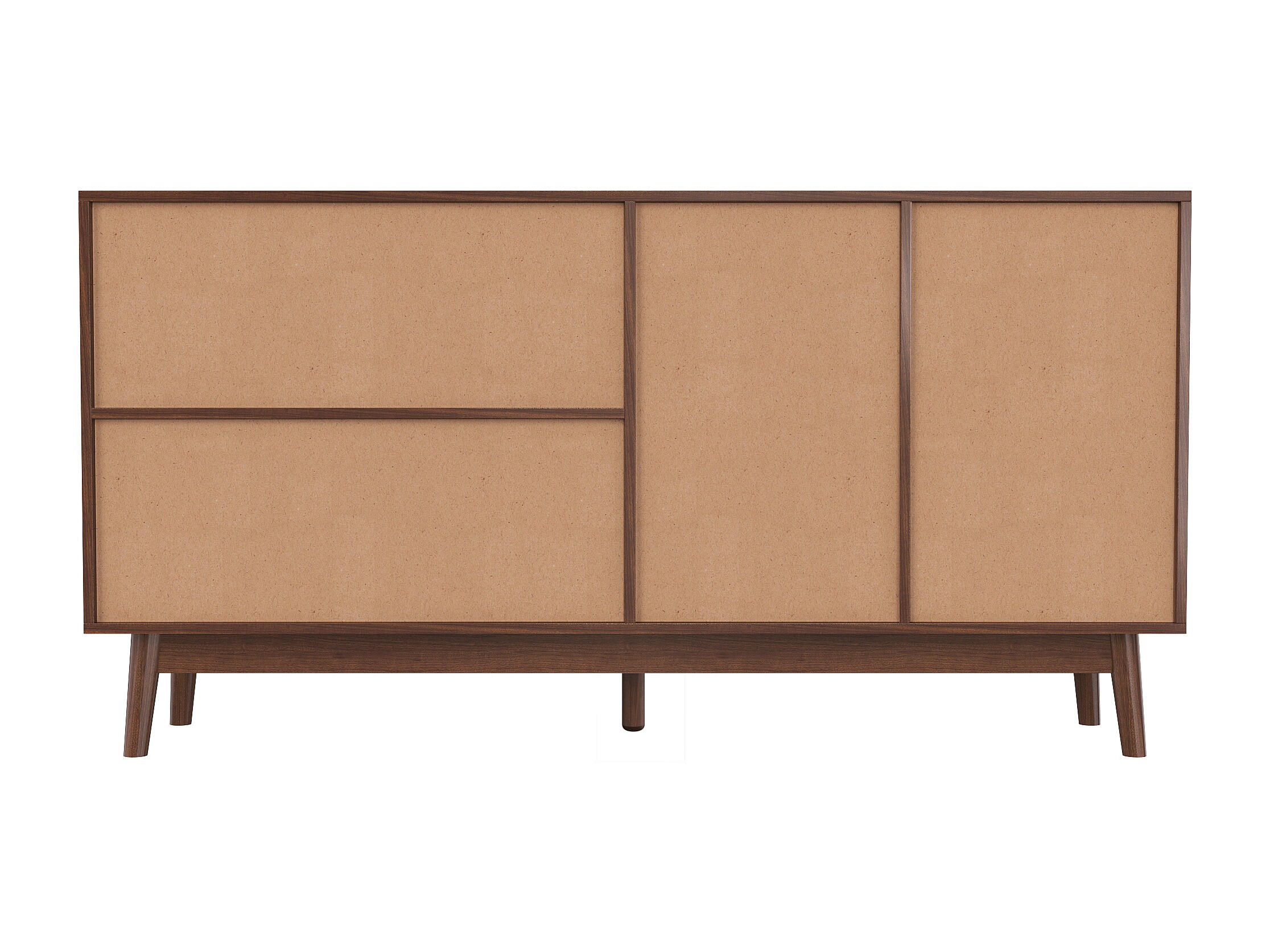Kredens w ciemnym naturalnym kolorze z 3 drzwiami rattanowymi i 2 szufladami do przechowywania - do salonu