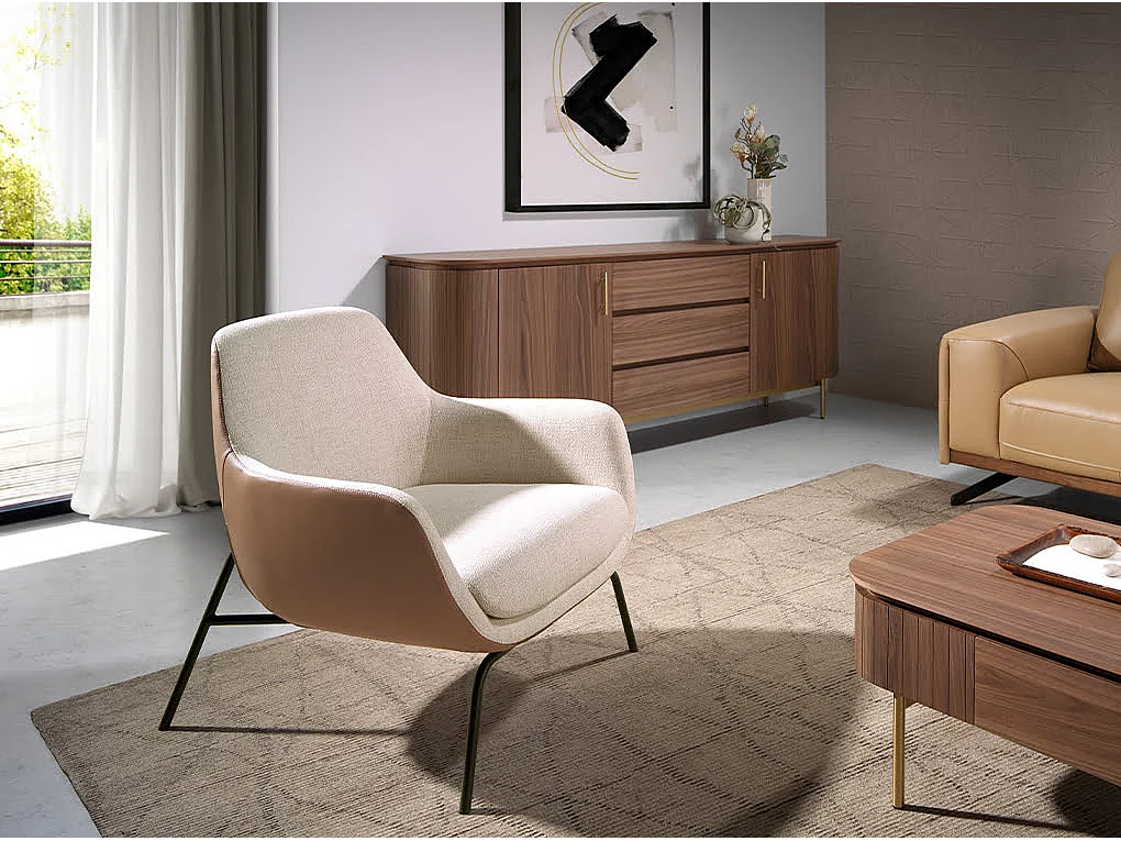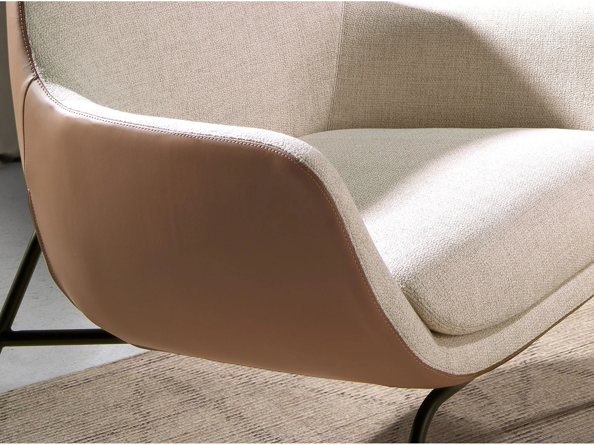 Kremowy fotel z tkaniny i brązowej ekoskóry 5099 ANGEL CERDA