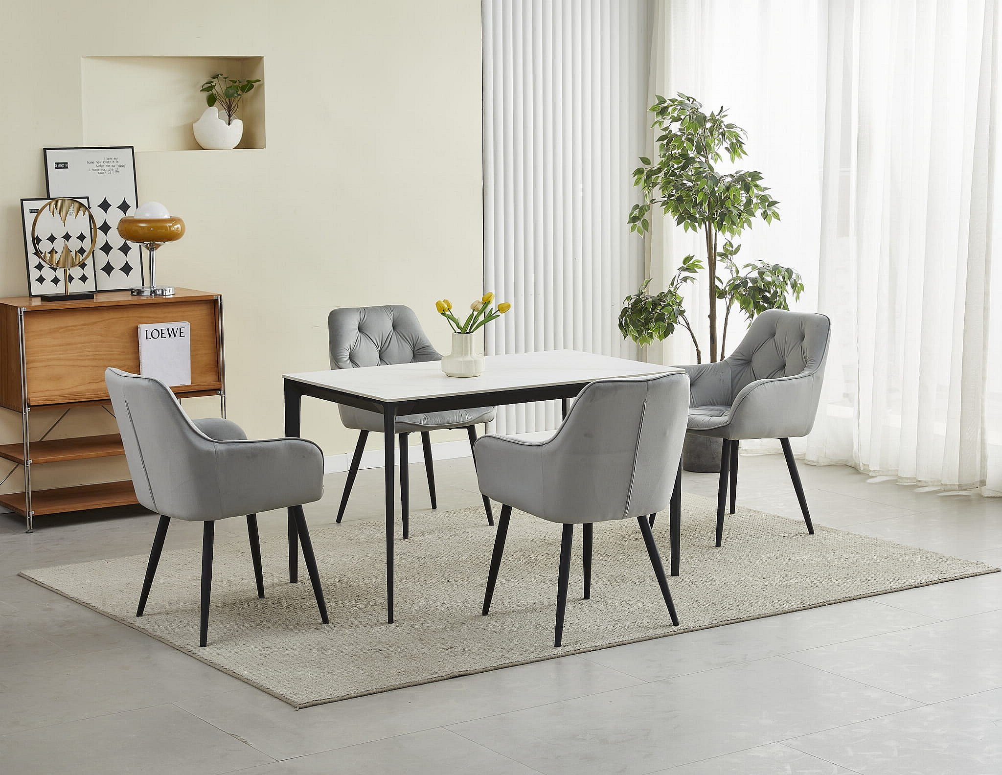 Krzesła do jadalni Valora LUKK – srebrno-szary aksamit z czarnymi nogami x 2