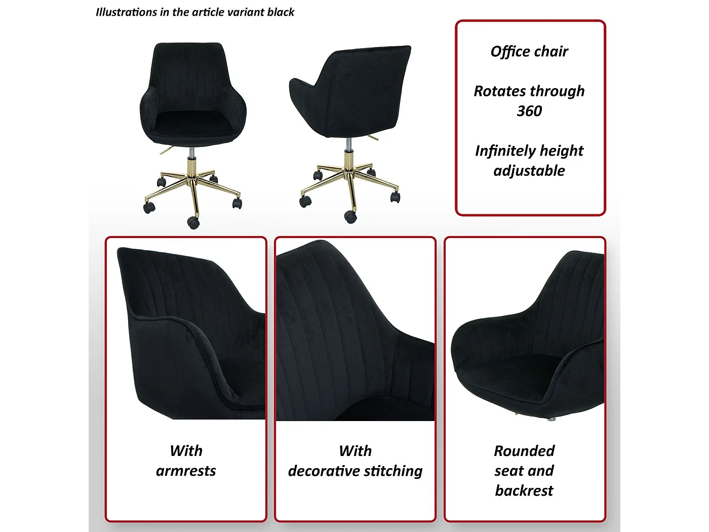 Krzesło biurowe MCW-J62 velvet z podłokietnikiem, czarny