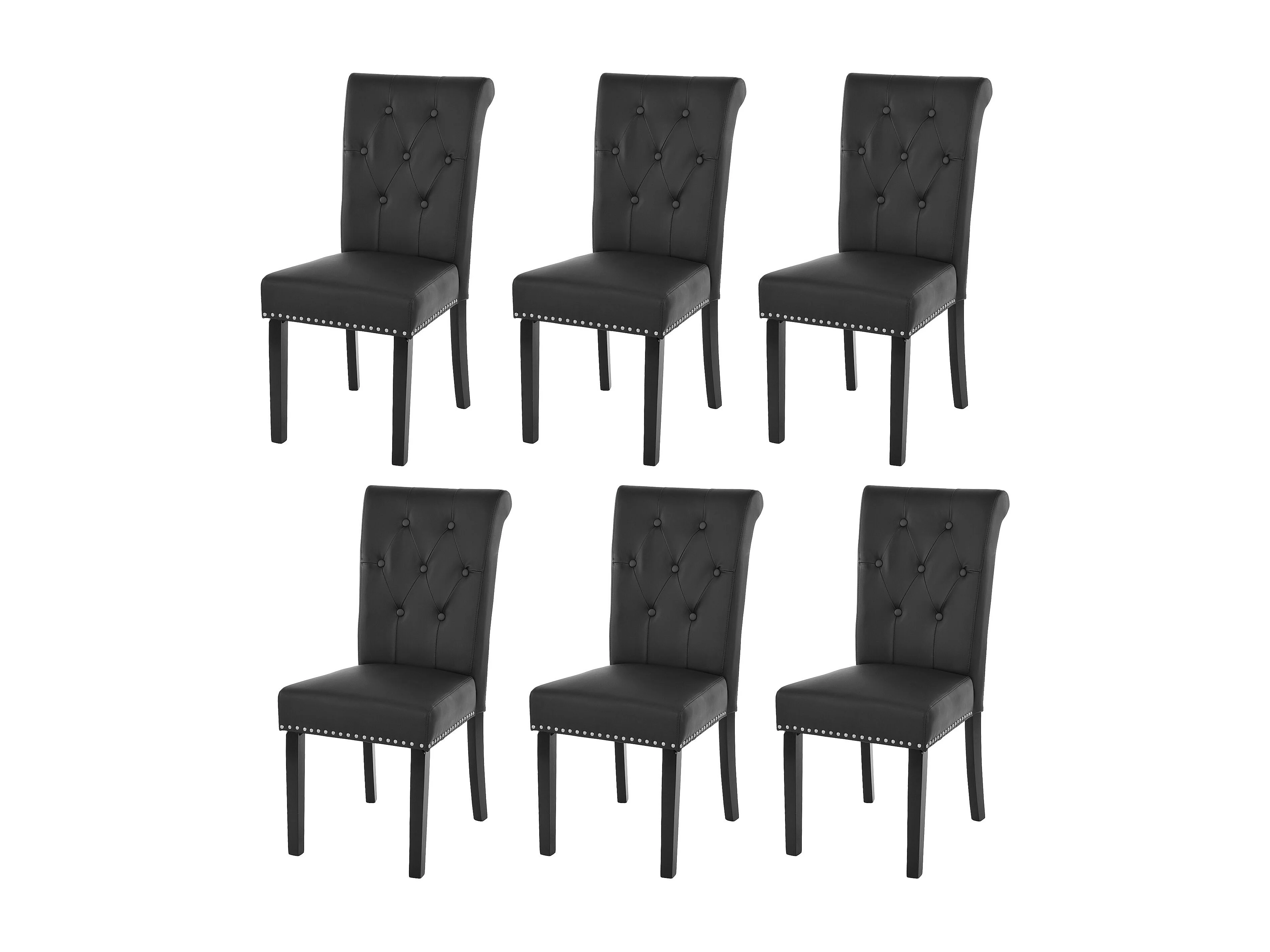 Krzesło do jadalni Chesterfield II (zestaw 6 sztuk), imitacja skóry, czarne, ciemne nogi