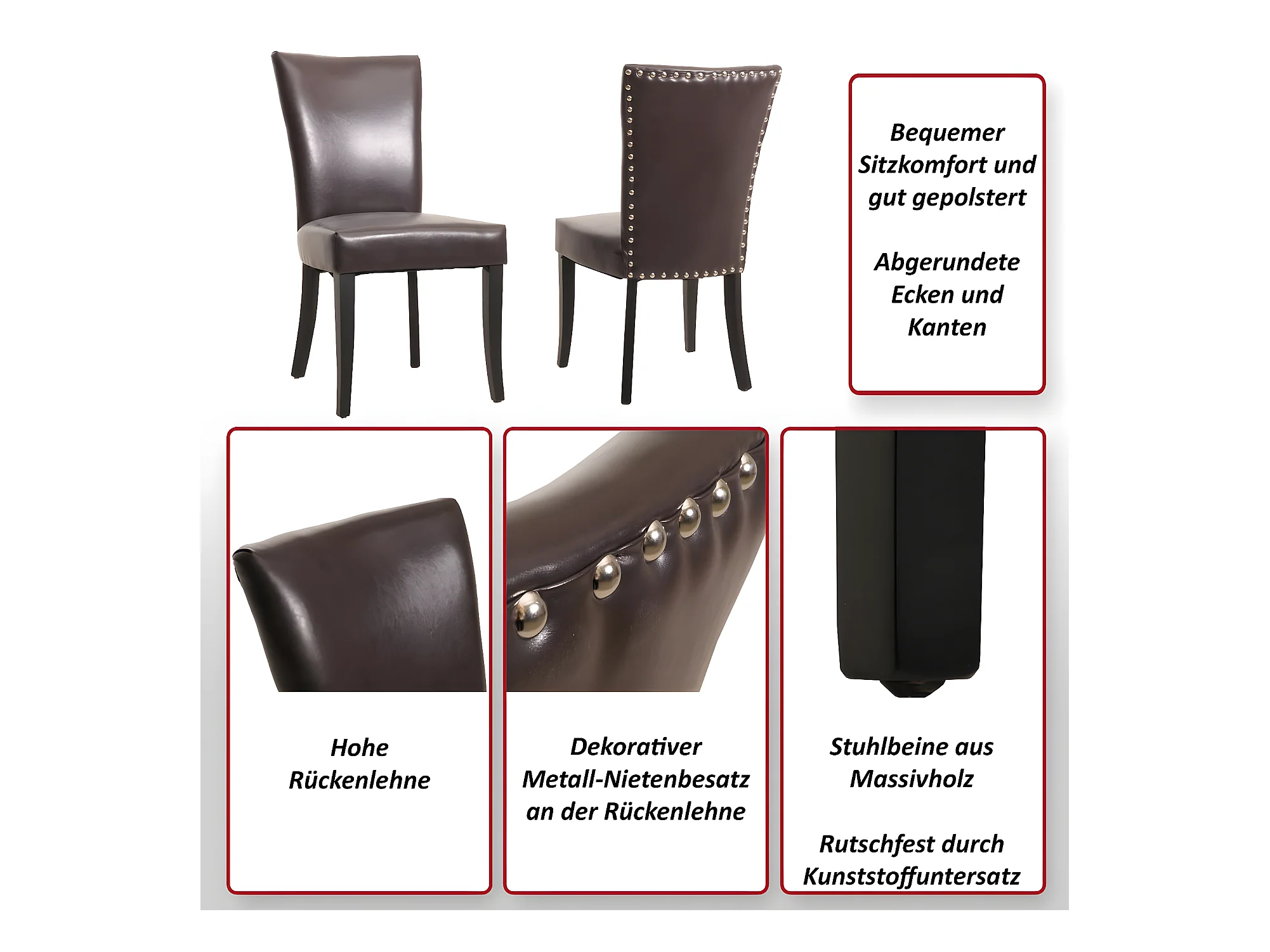 Krzesło do jadalni Chesterfield Il (zestaw 2 sztuk), imitacja skóry, kawa, ciemne nogi