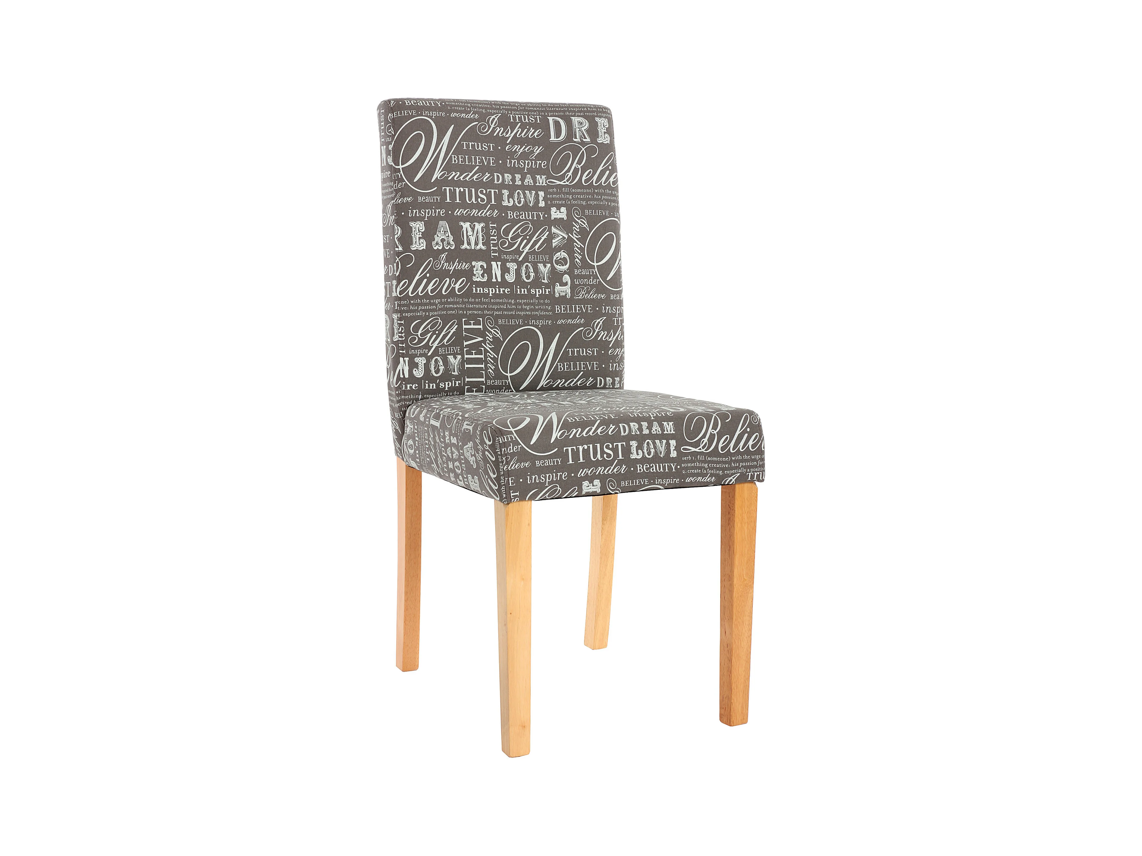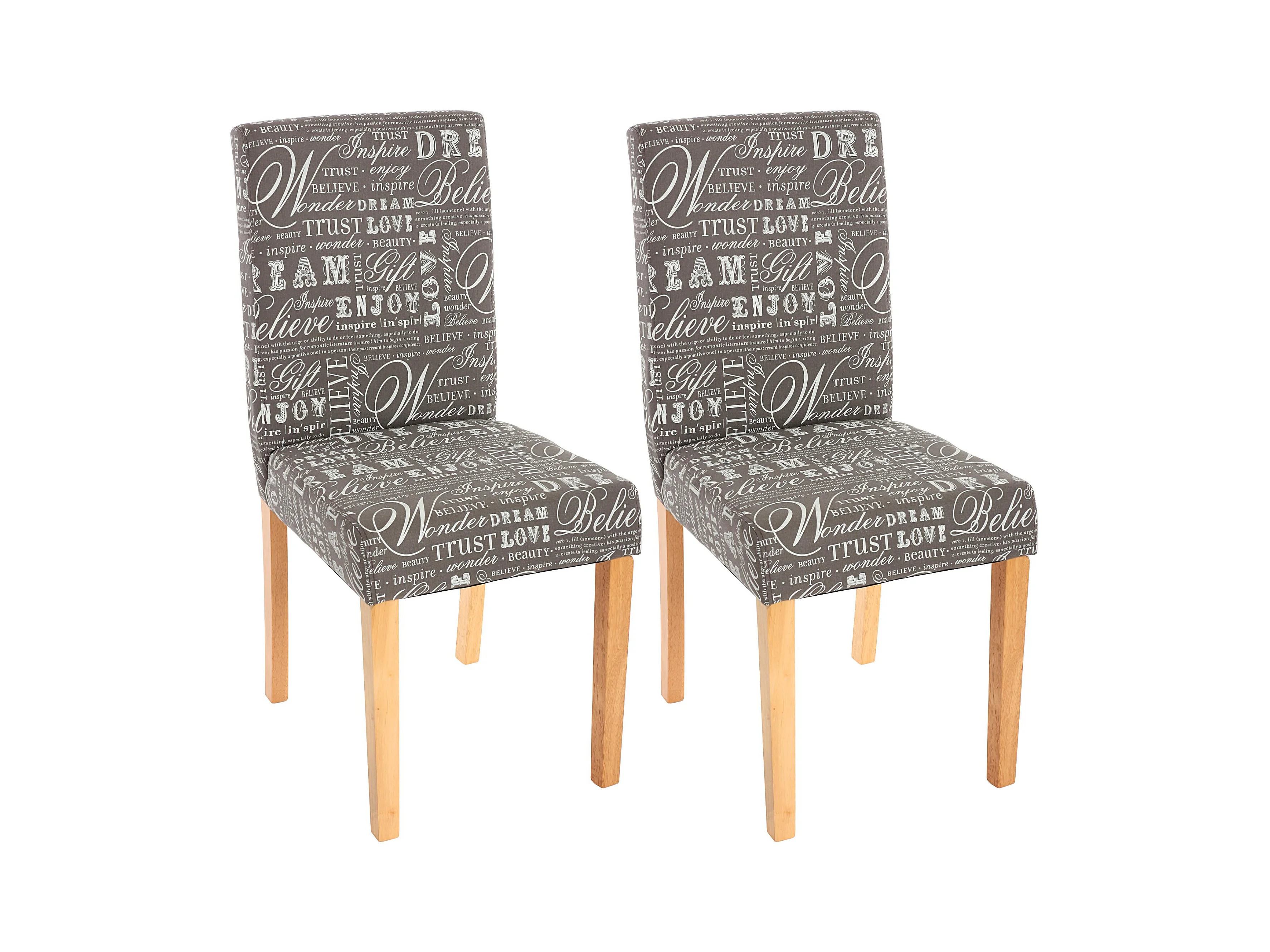 Krzesło do jadalni Littau (zestaw 2 sztuk), tkanina z napisem, szary, jasne nogi