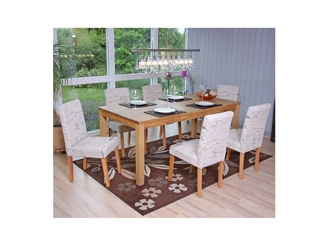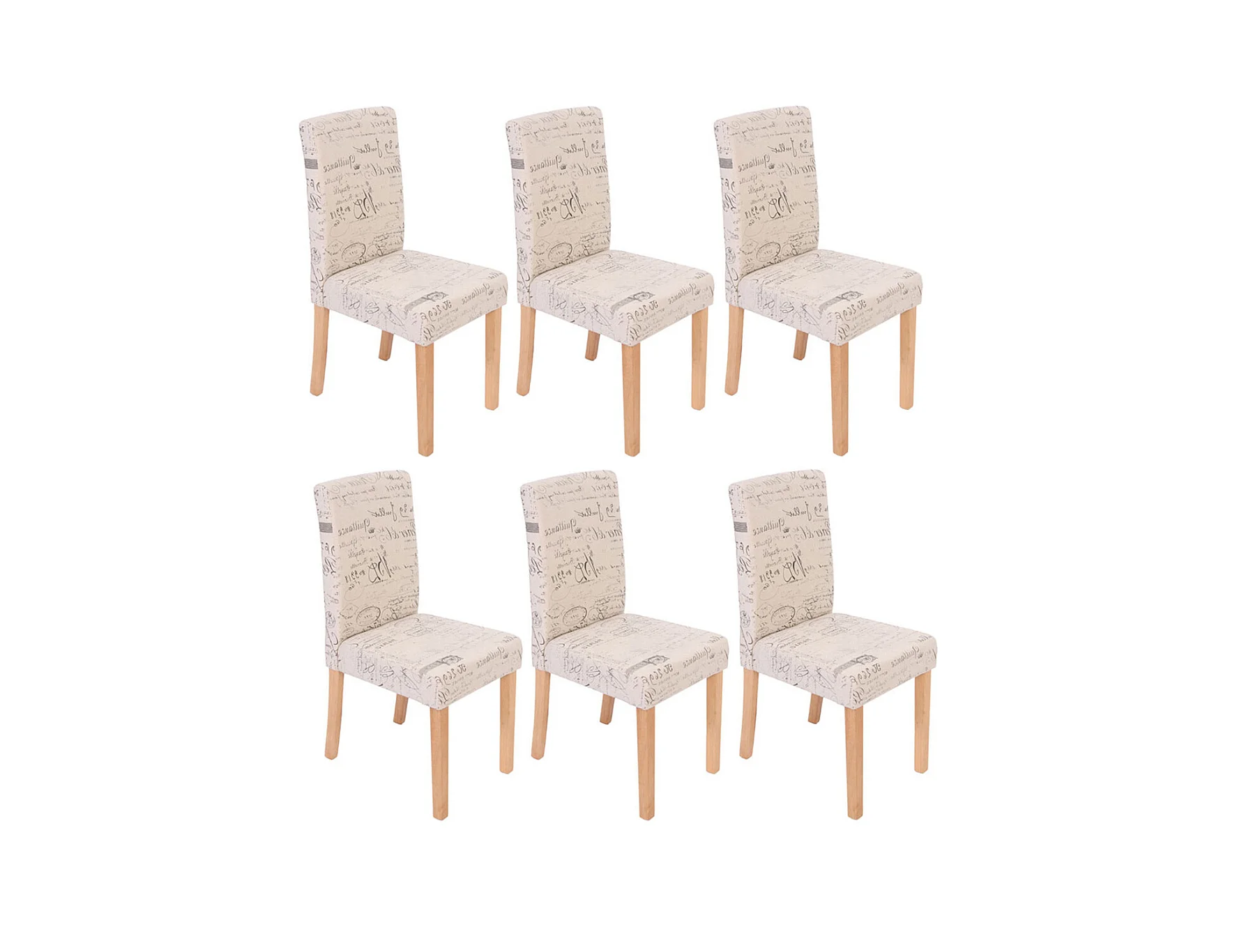 Krzesło do jadalni Littau (zestaw 6 sztuk), tkanina z napisem, kremowy, jasne nogi