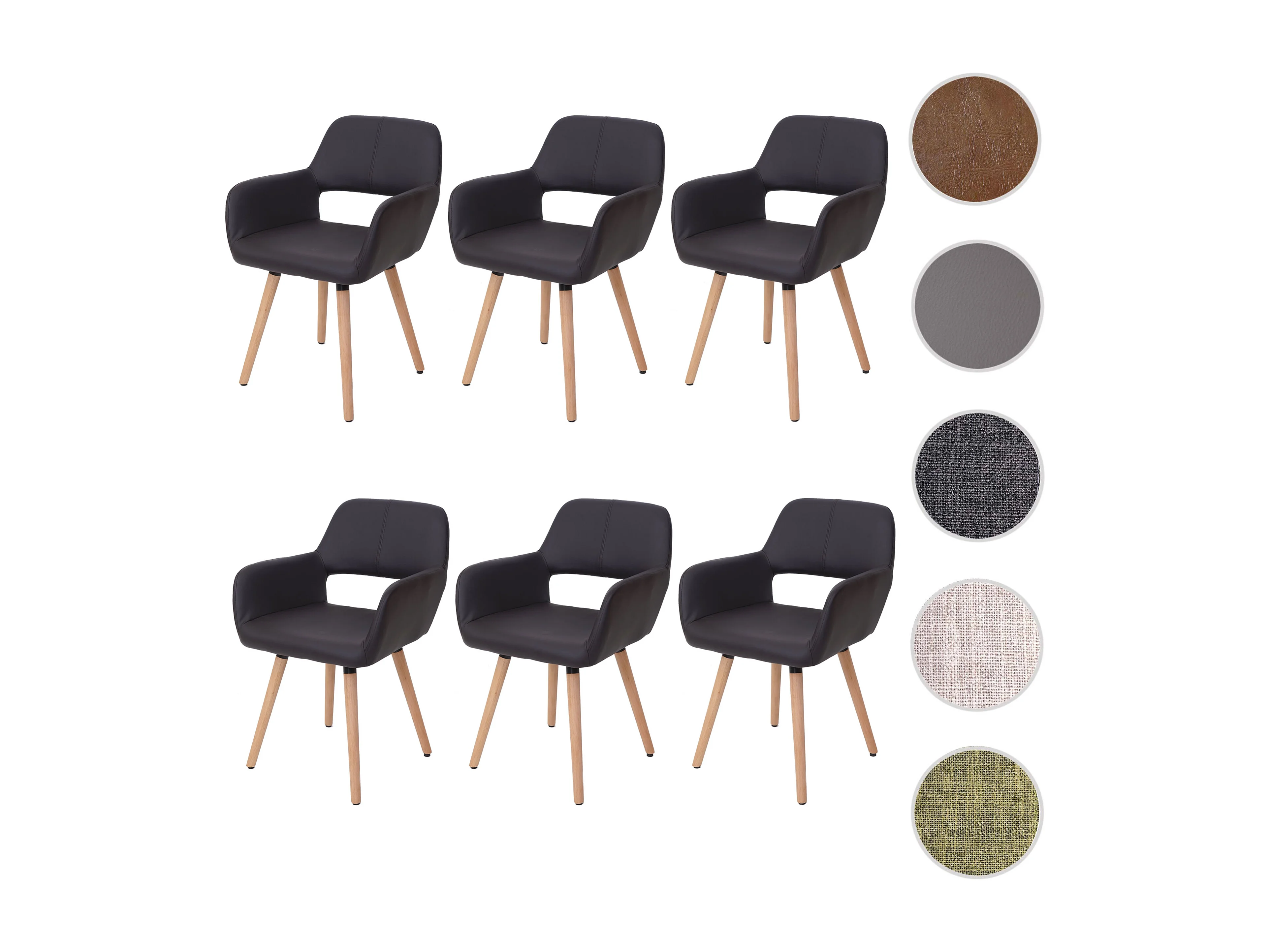 Krzesło do jadalni MCW-A50 II (zestaw 6 sztuk), imitacja skóry, brązowe, jasne nogi