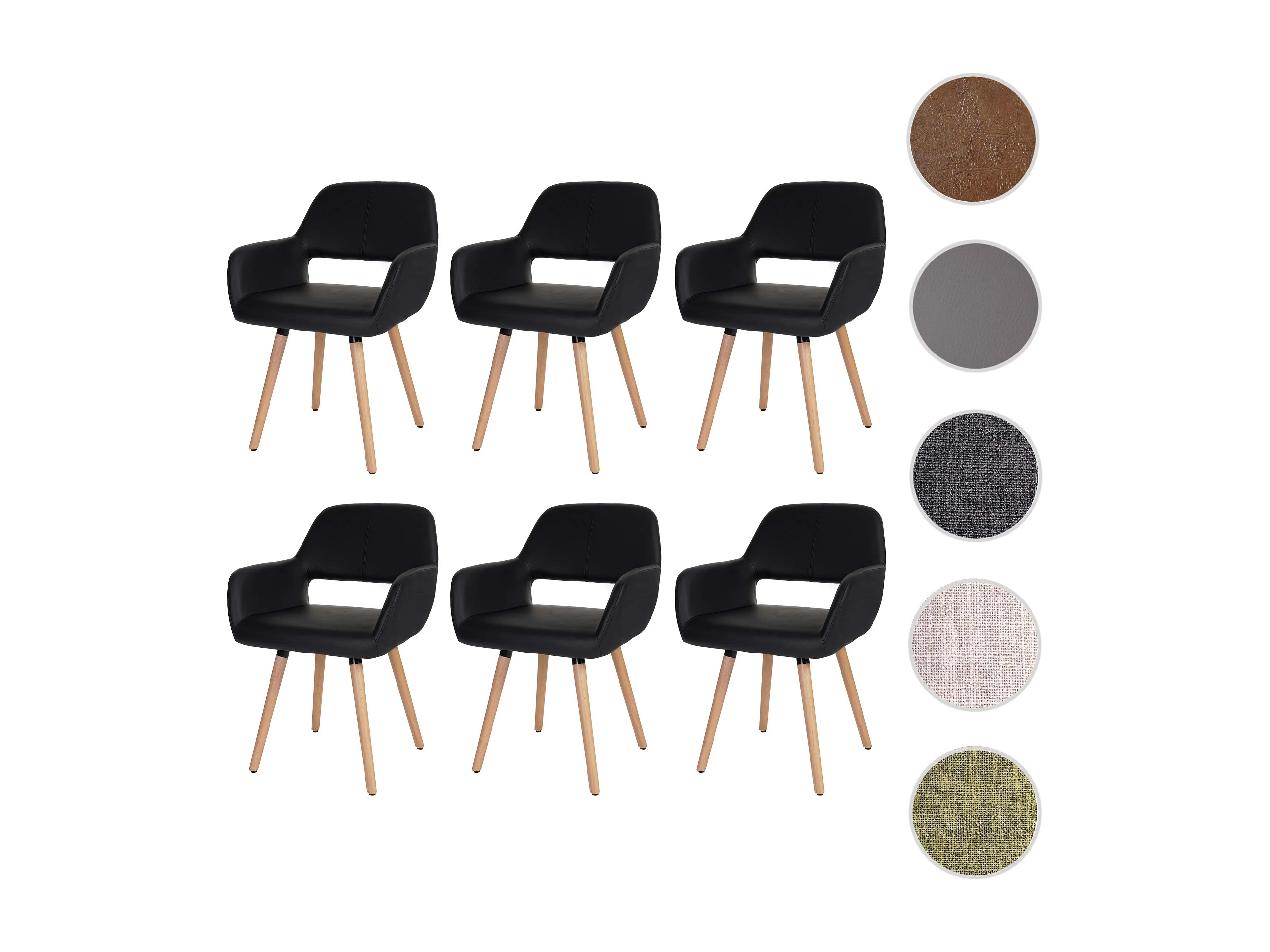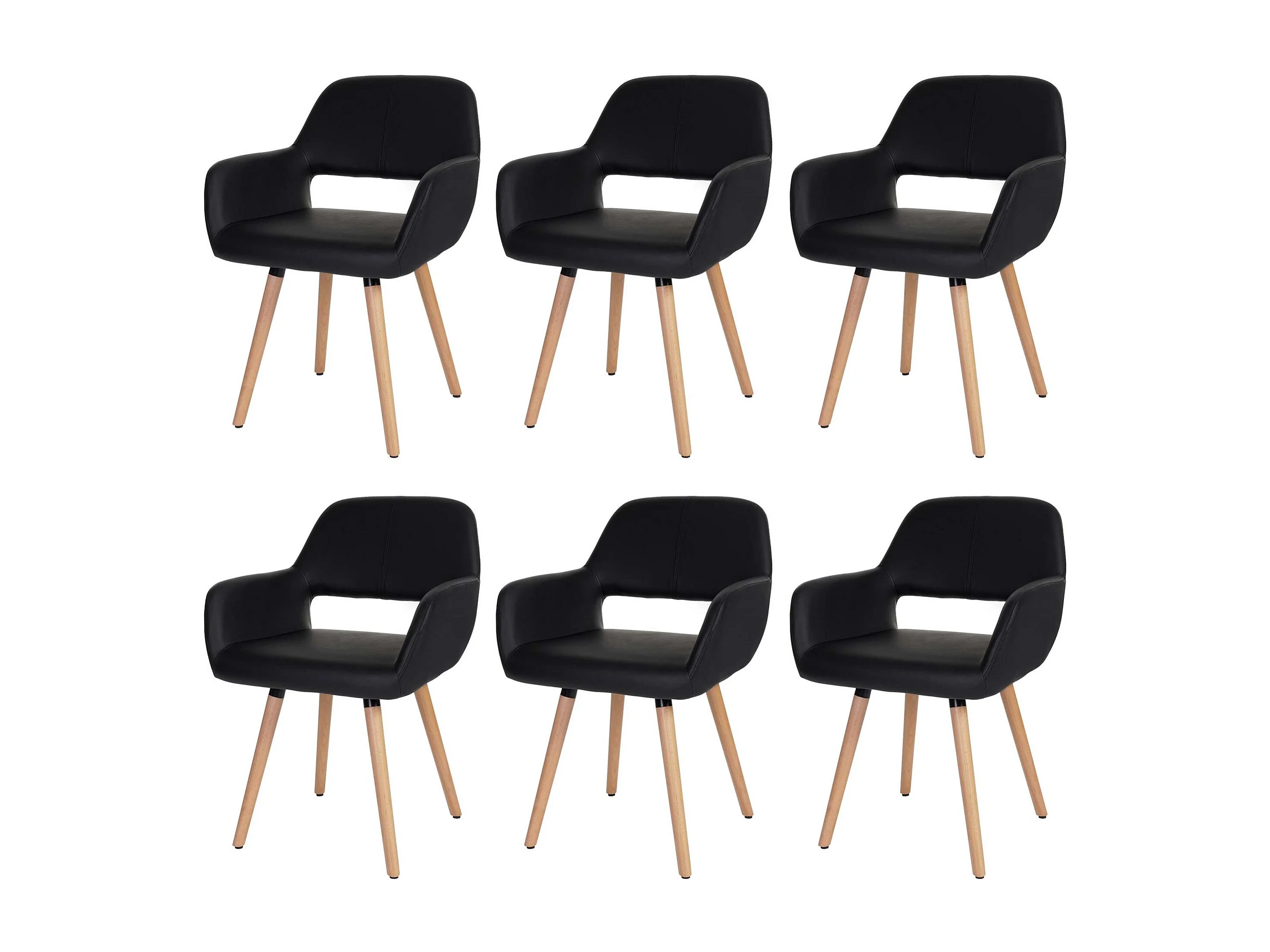 Krzesło do jadalni MCW-A50 II (zestaw 6 sztuk), sztuczna skóra, czarne, jasne nogi