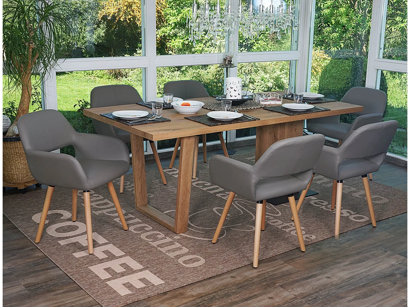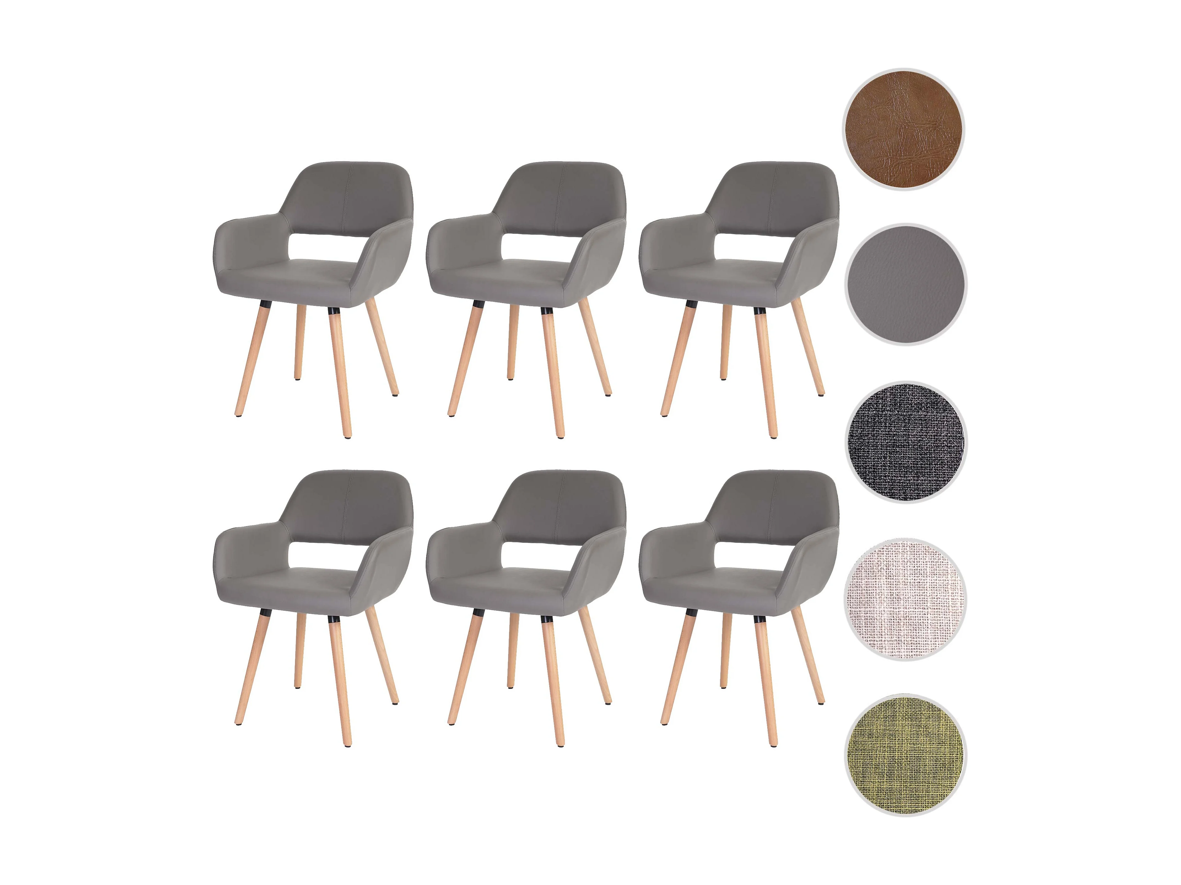 Krzesło do jadalni MCW-A50 II (zestaw 6 sztuk), sztuczna skóra, taupe-szary, jasne nogi