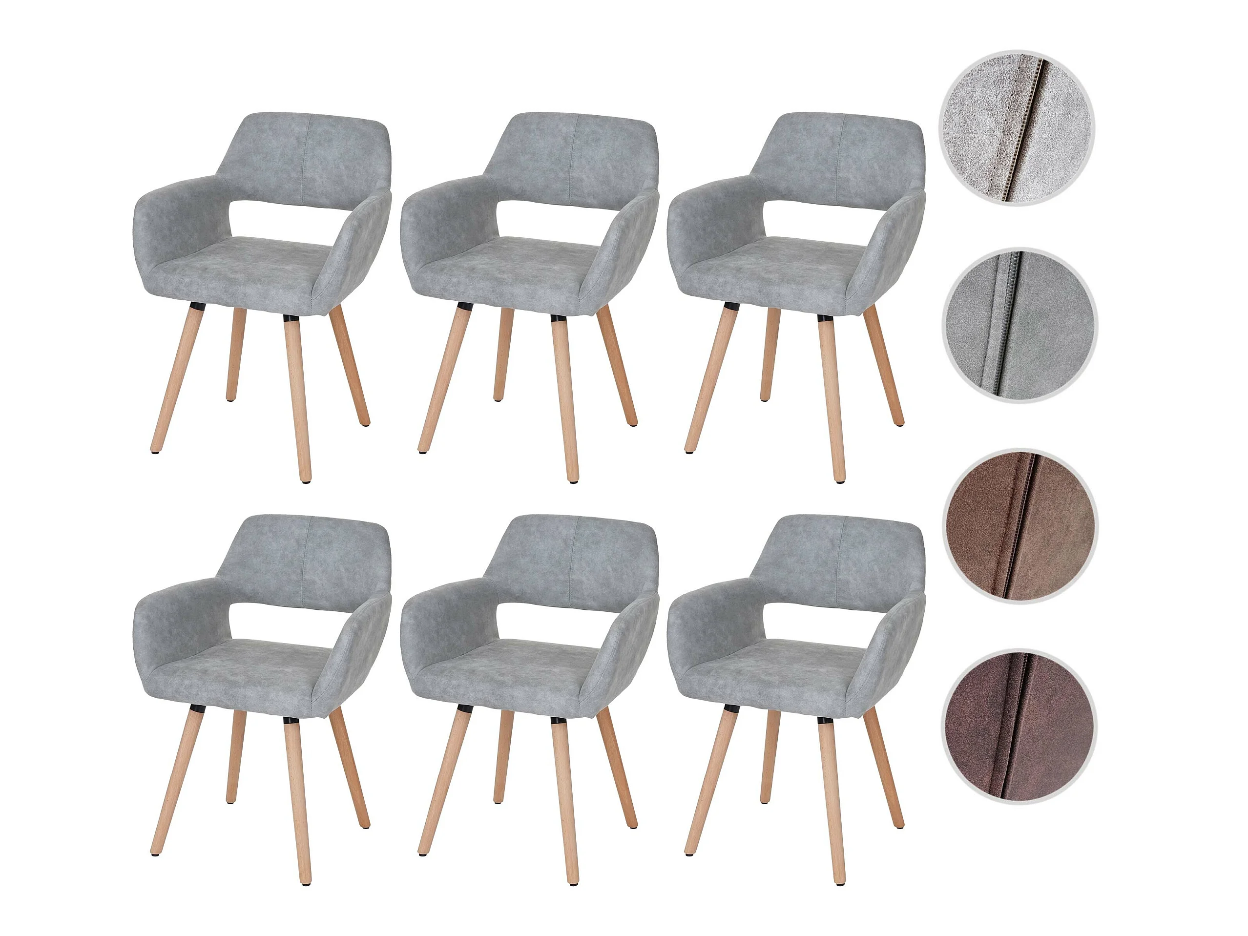 Krzesło do jadalni MCW-A50 II (zestaw 6 sztuk), tkanina, beton vintage szary, jasne nogi
