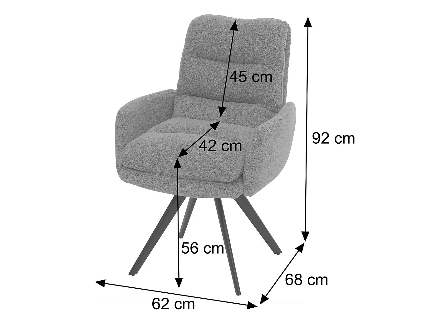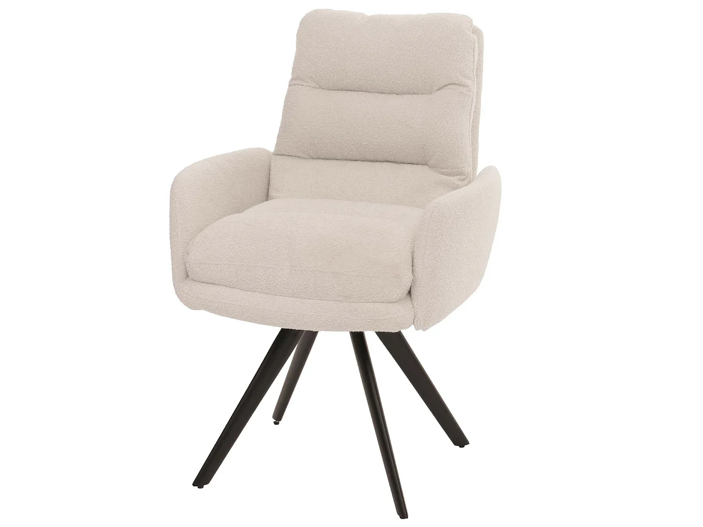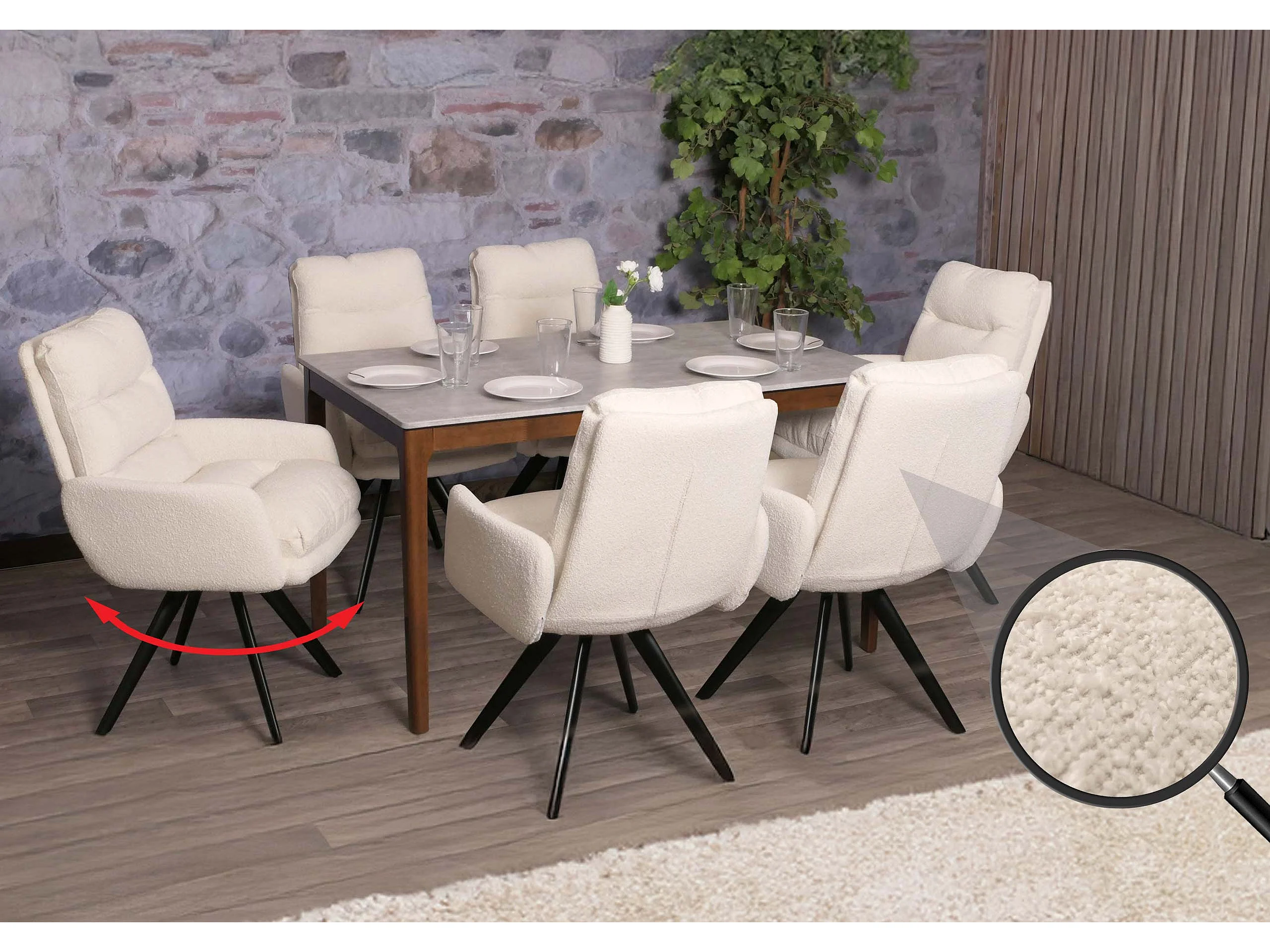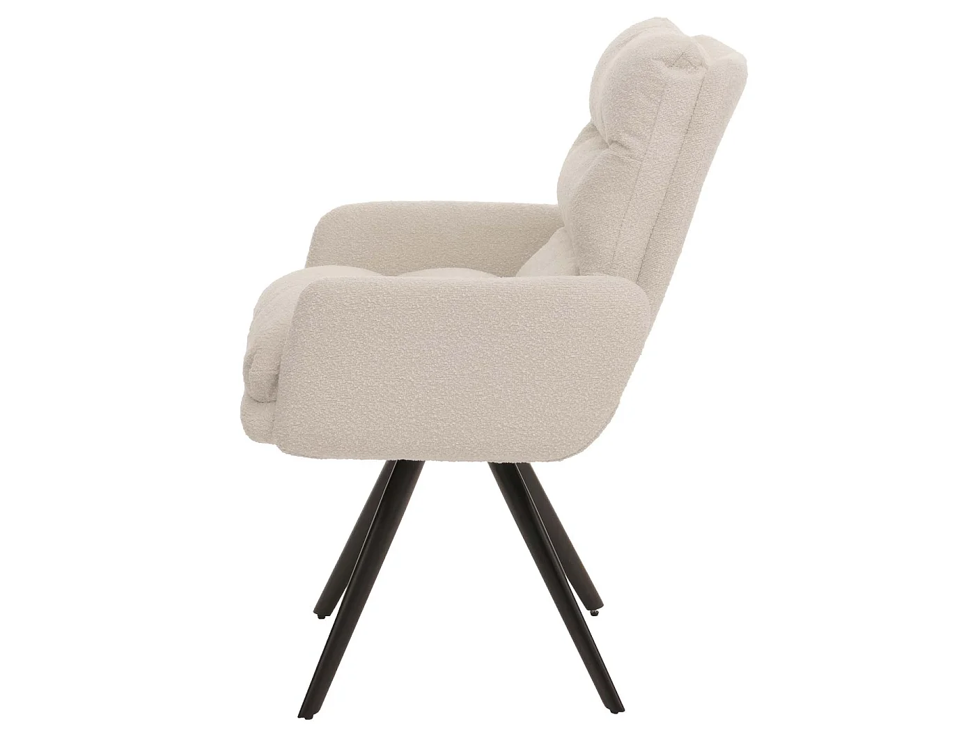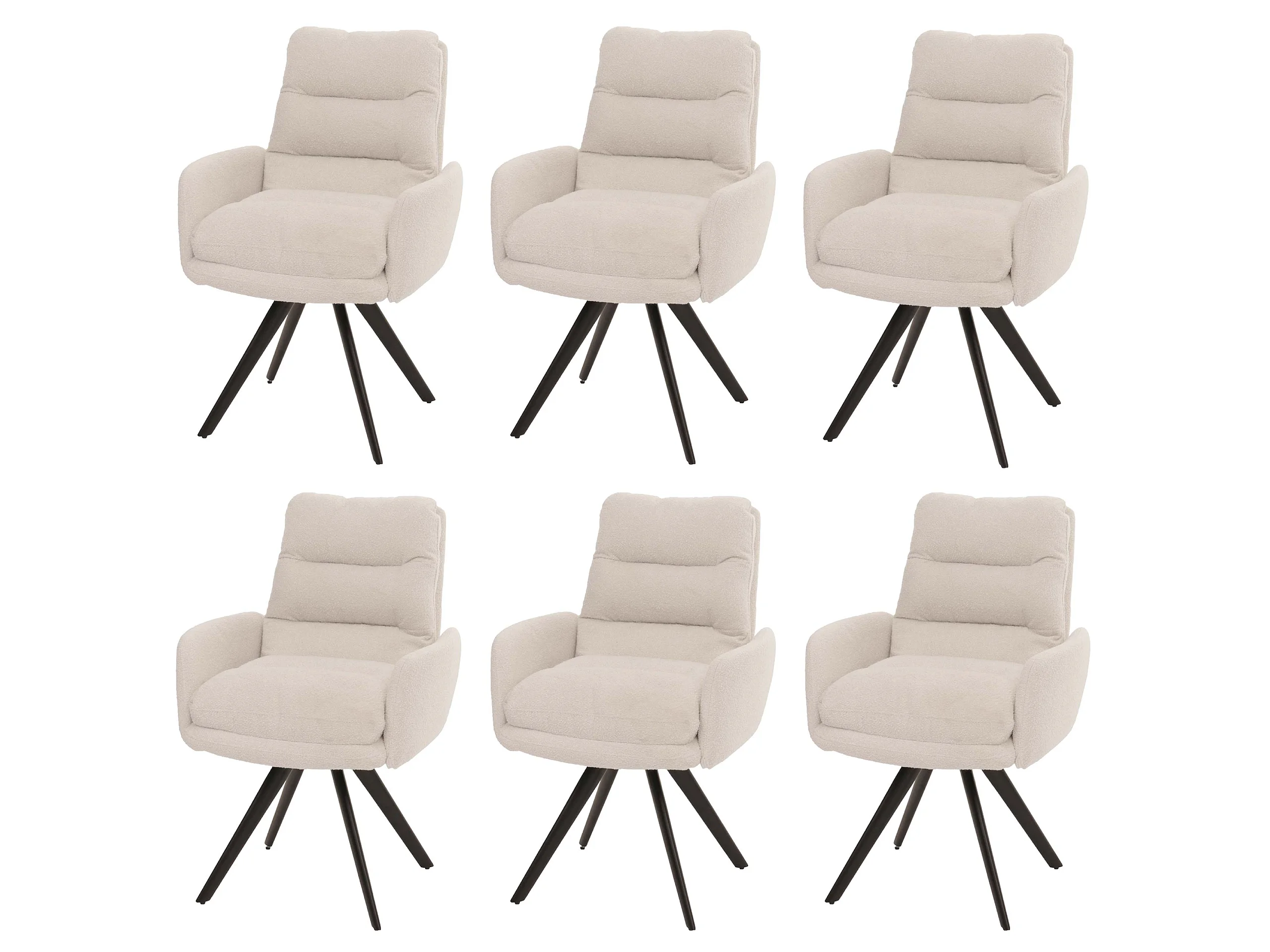 Krzesło do jadalni MCW-G66 Bouclé (zestaw 6 sztuk), kremowo-białe, z podłokietnikami