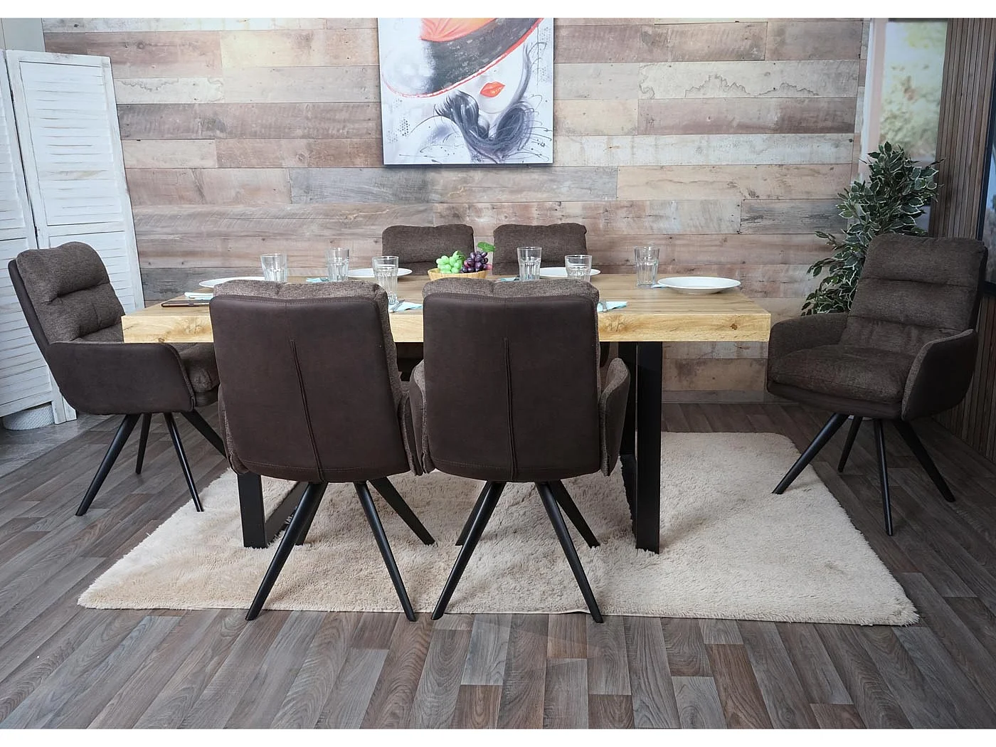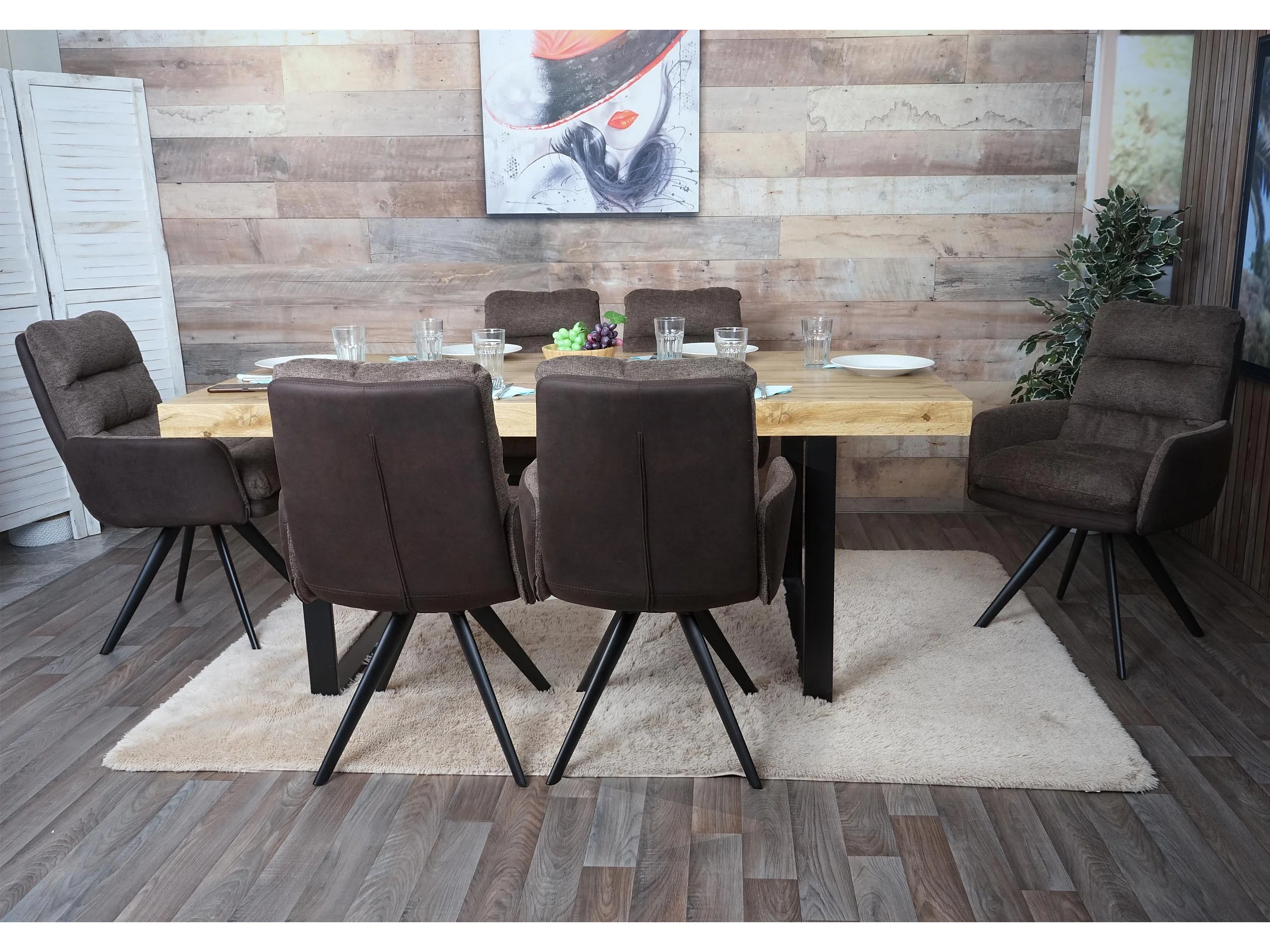 Krzesło do jadalni MCW-G66 (zestaw 6 sztuk), brązowo-ciemnobrązowy, z podłokietnikiem