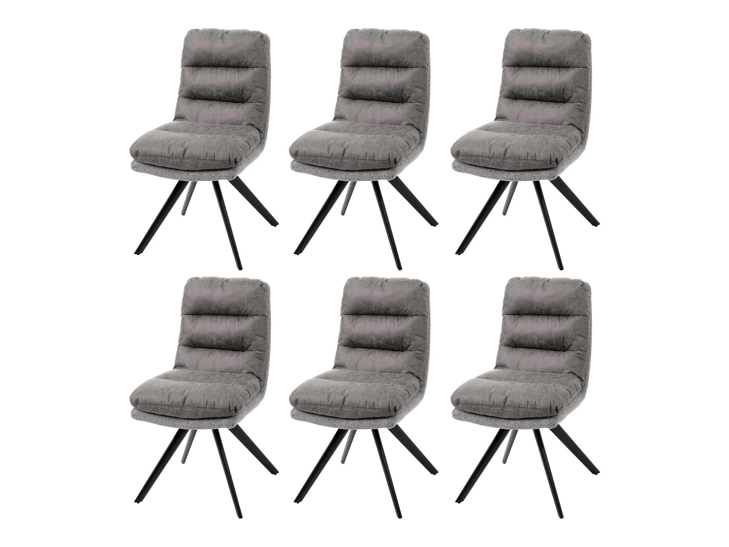 Krzesło do jadalni Cadiz II (zestaw 6 sztuk), tkanina / materiał ciemnoszary, podstawa czarna