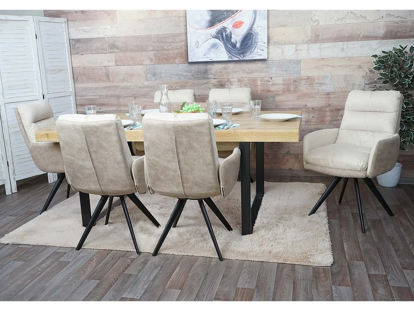 Krzesło do jadalni MCW-G66 (zestaw 6 sztuk), kremowy, z podłokietnikiem