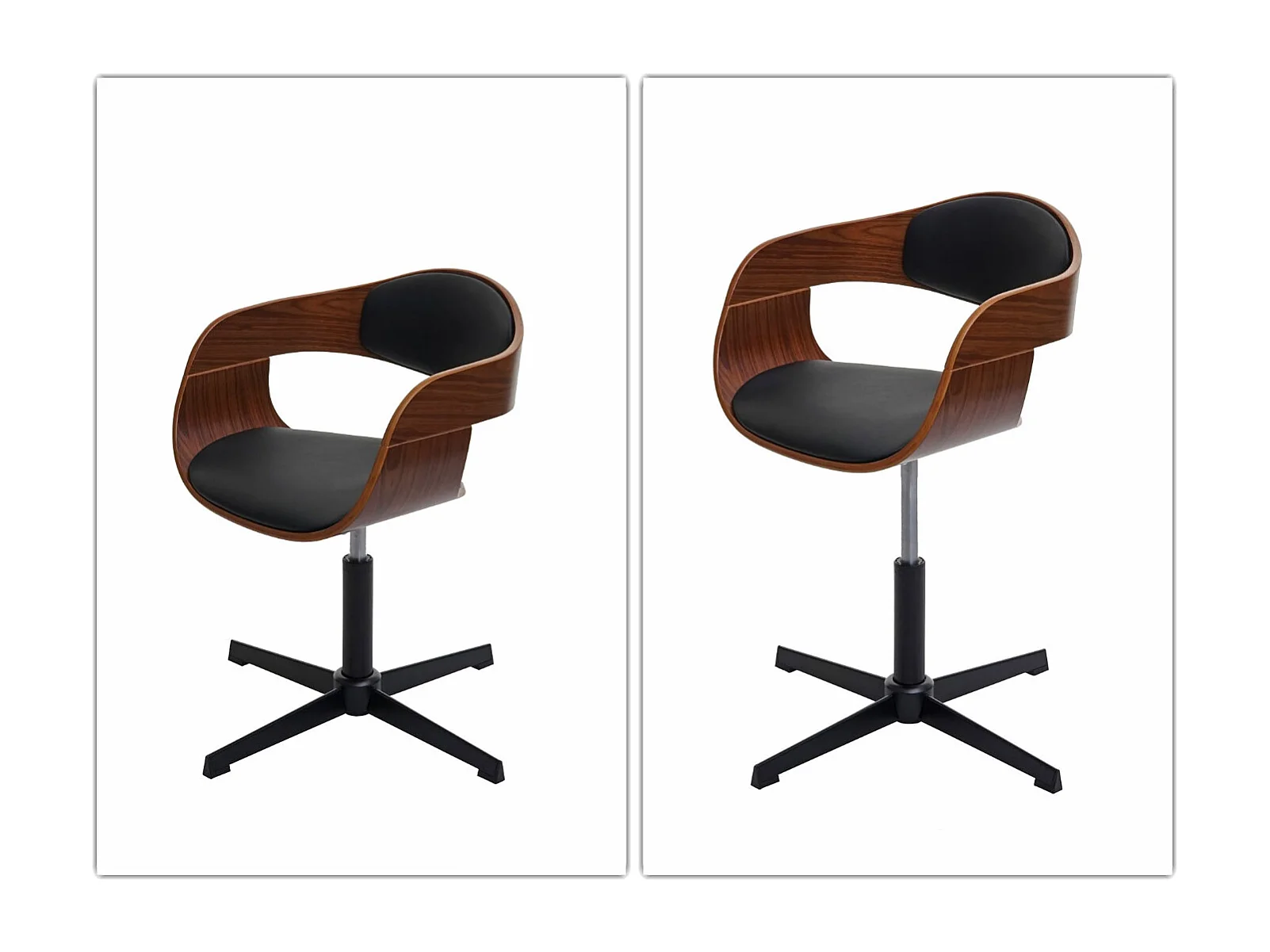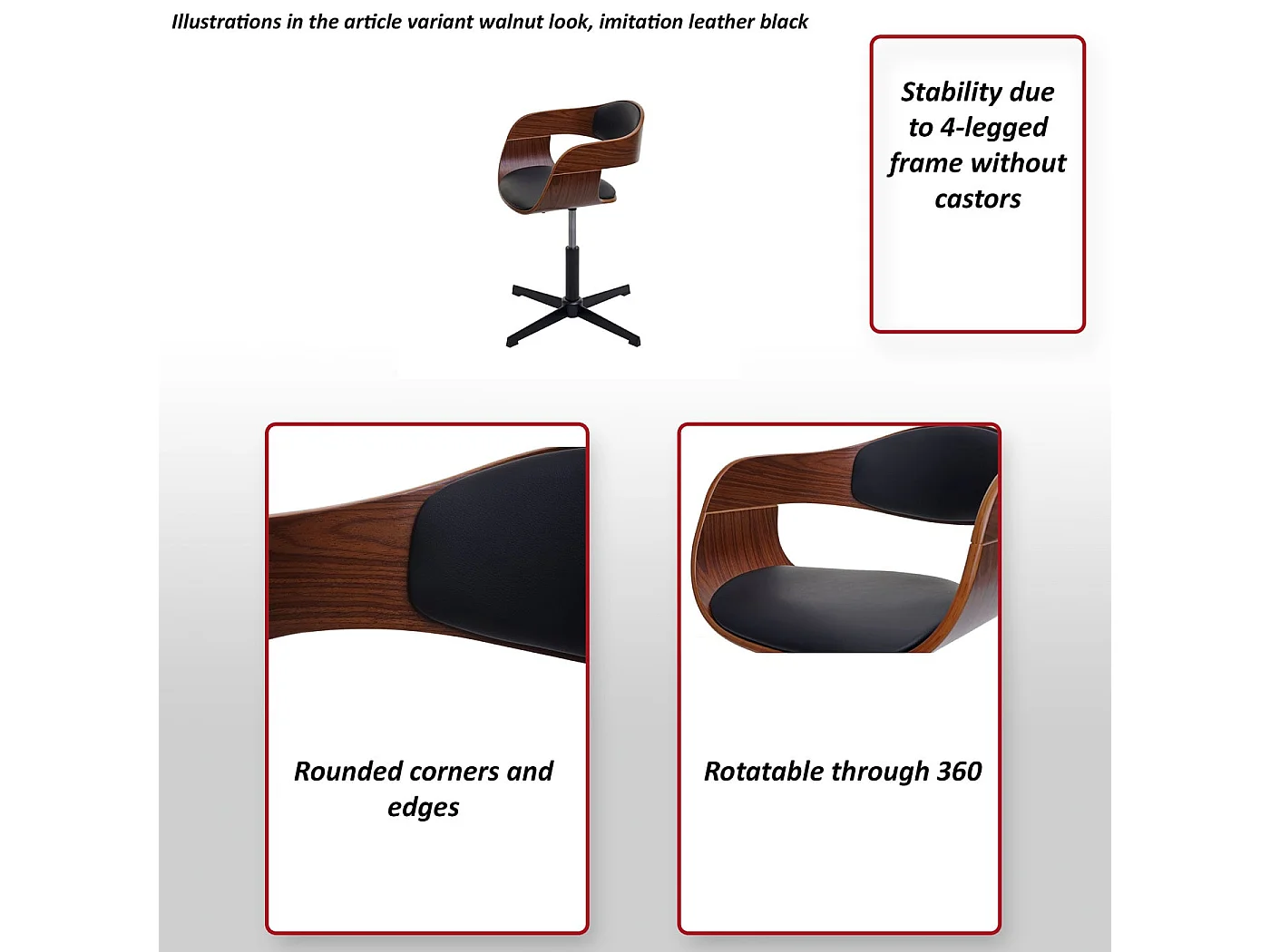 Krzesło do jadalni MCW-H46, wykończenie imitujące orzech, czarna sztuczna skóra