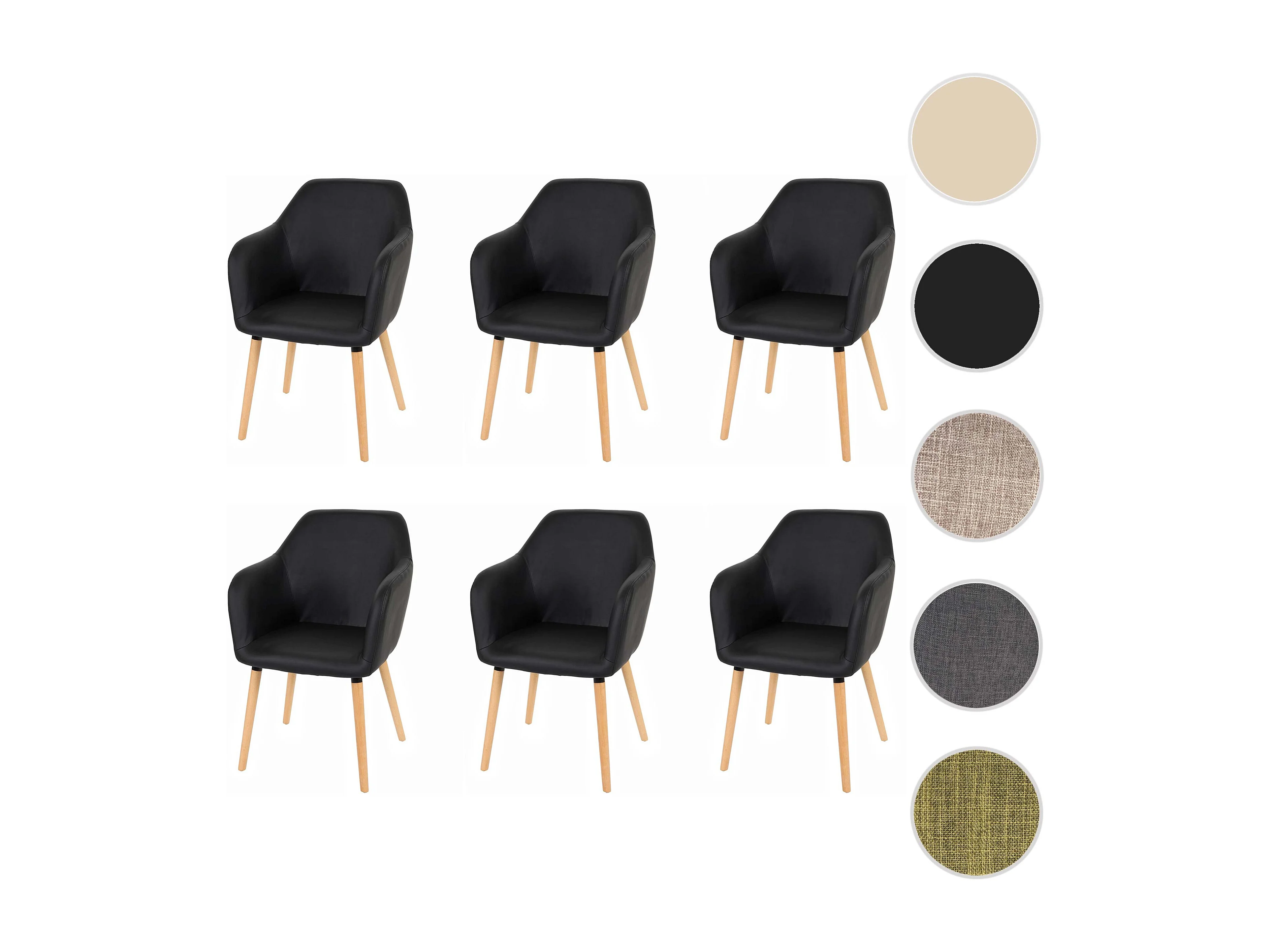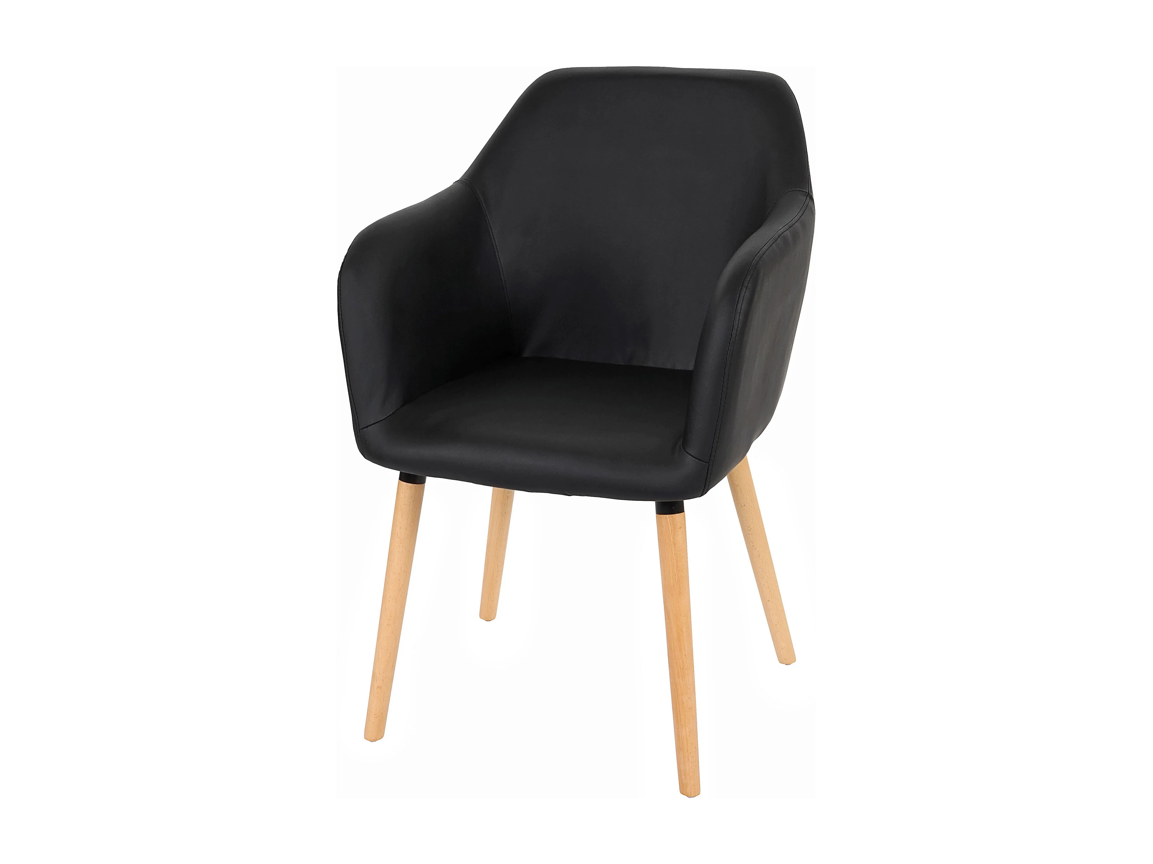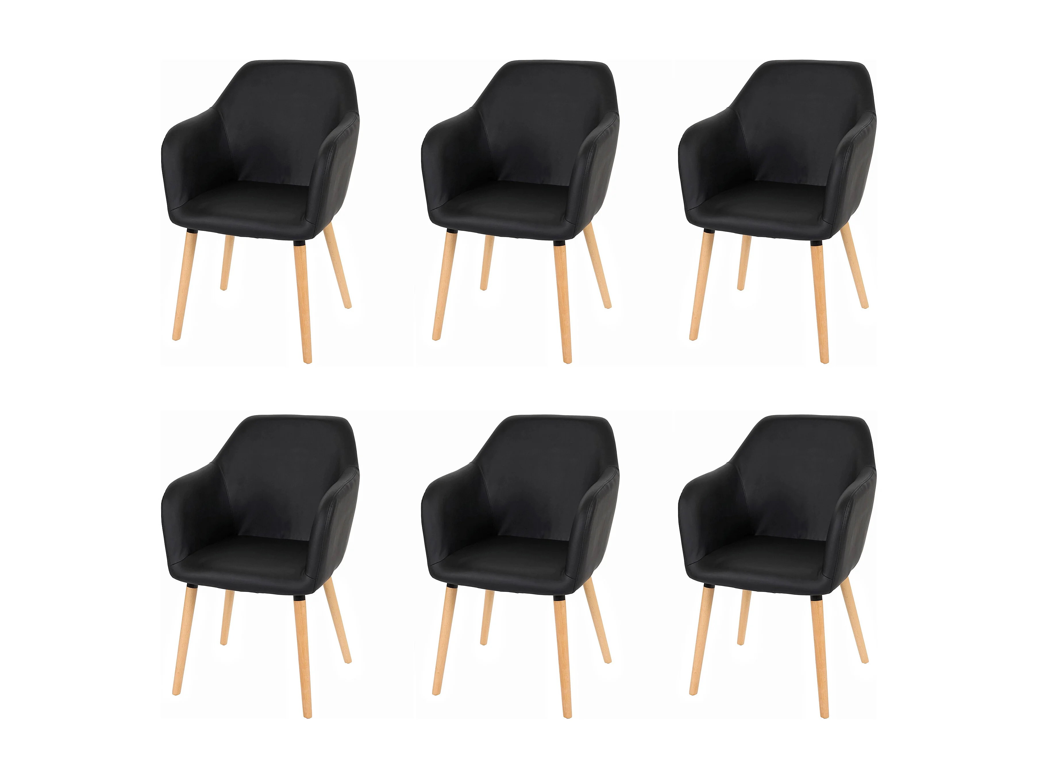 Krzesło do jadalni Vaasa T381 (zestaw 6 sztuk), imitacja skóry, czarne, jasne nogi