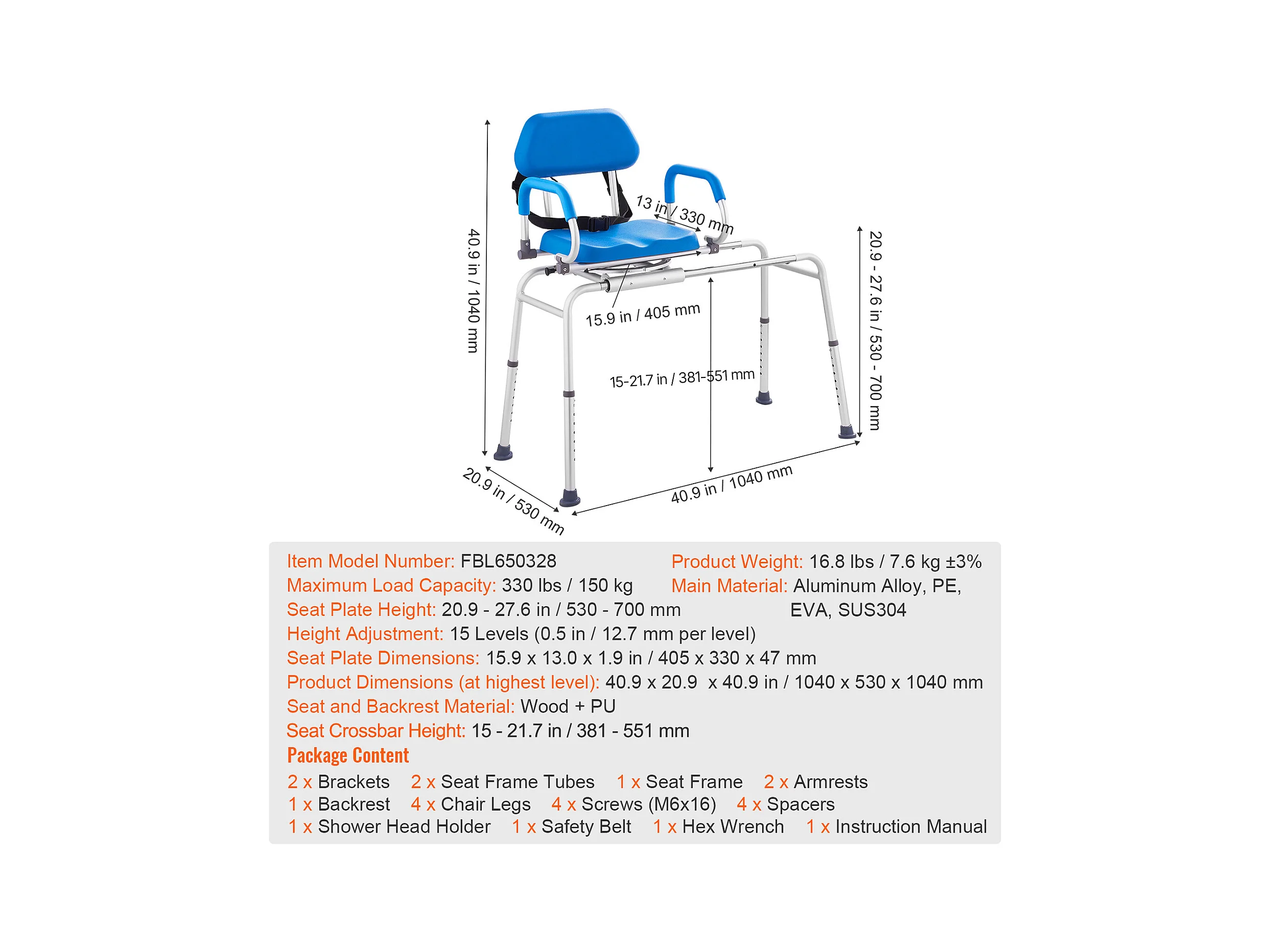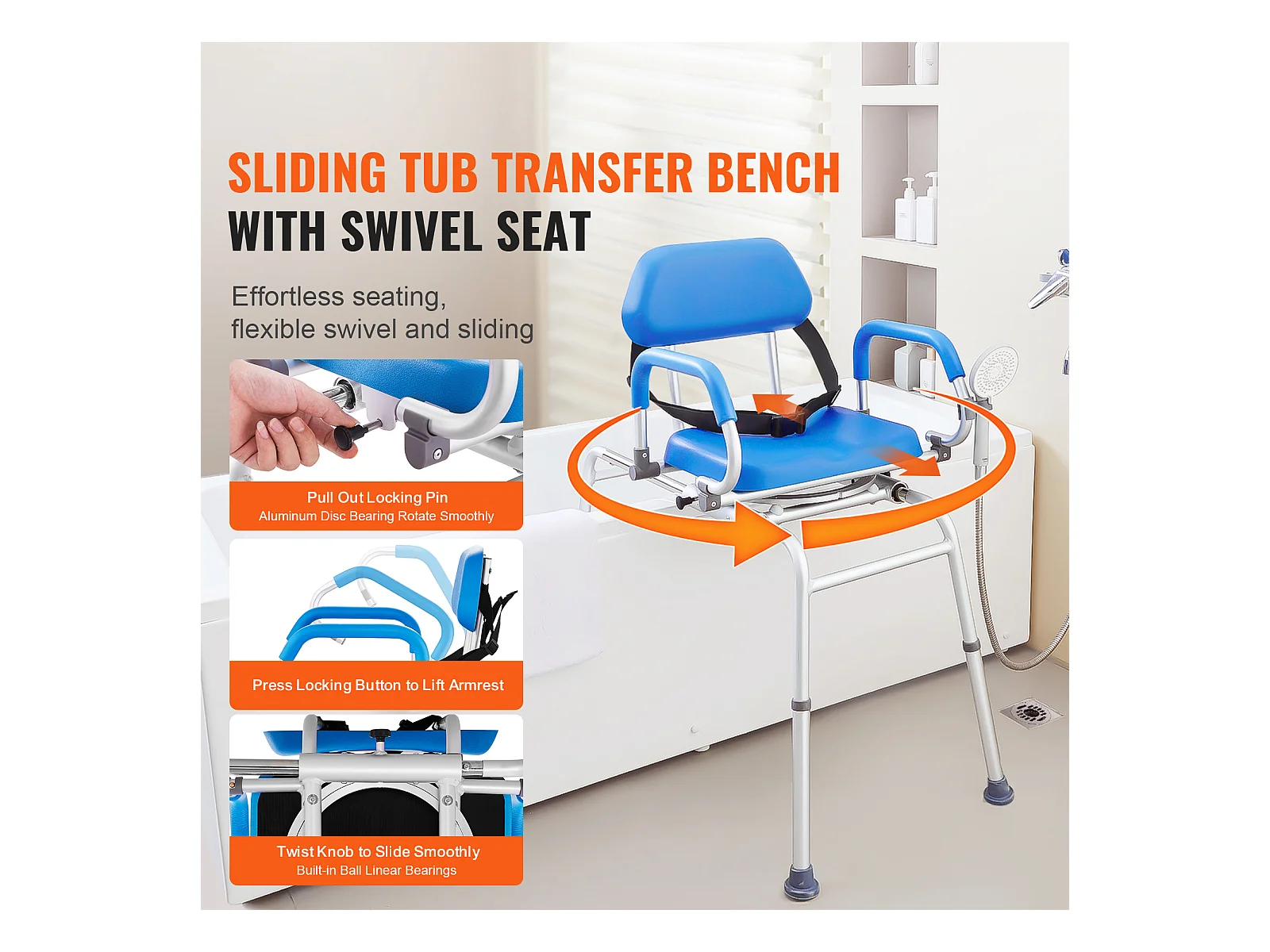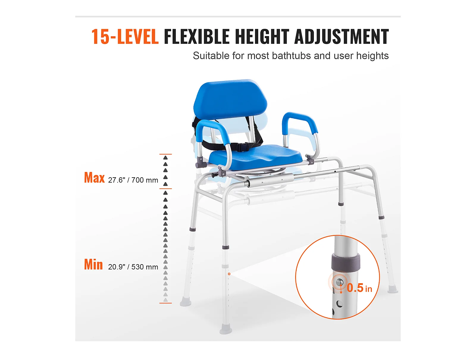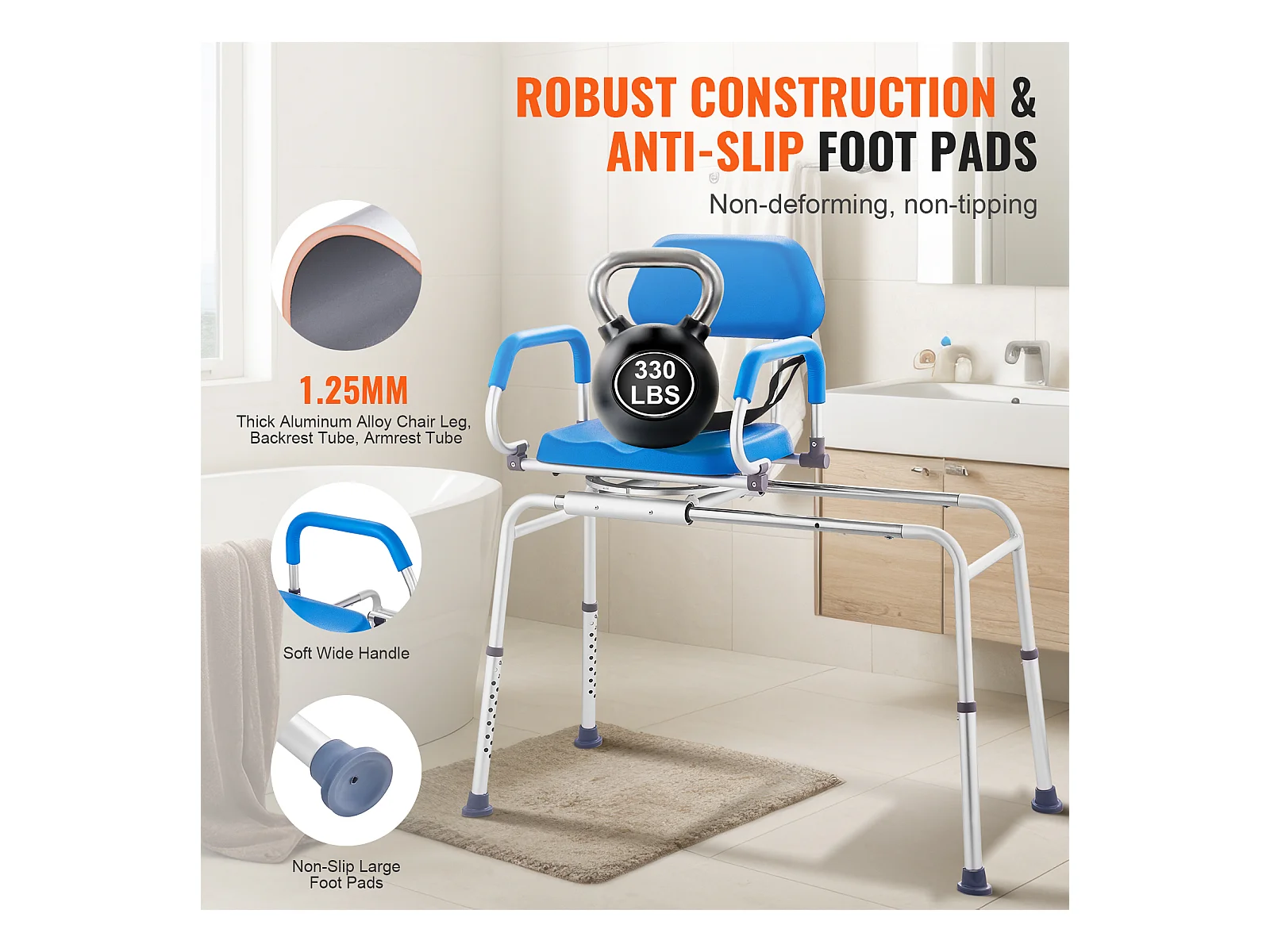 Krzesło Do Pryszniców SucceBuy Krętowe 360°, Przesuwne Krzesło Przenoszące Do Wanny, Maks. Obciążenie 150 kg