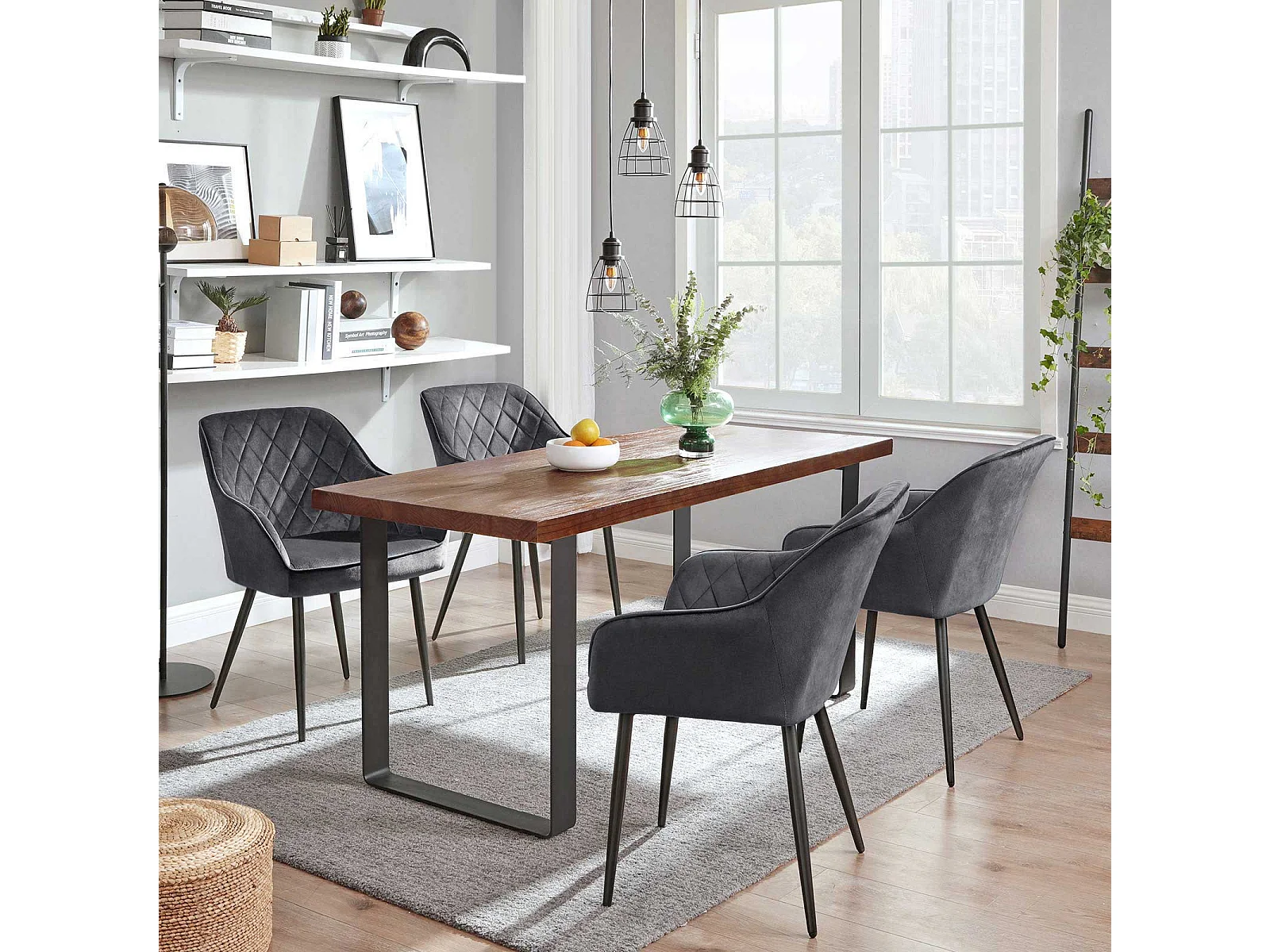 Zestaw 4 krzeseł do jadalni - 47,5 x 56 x 74 cm - krzesło do toaletki - nogi w kolorze złotym - szenil - szary