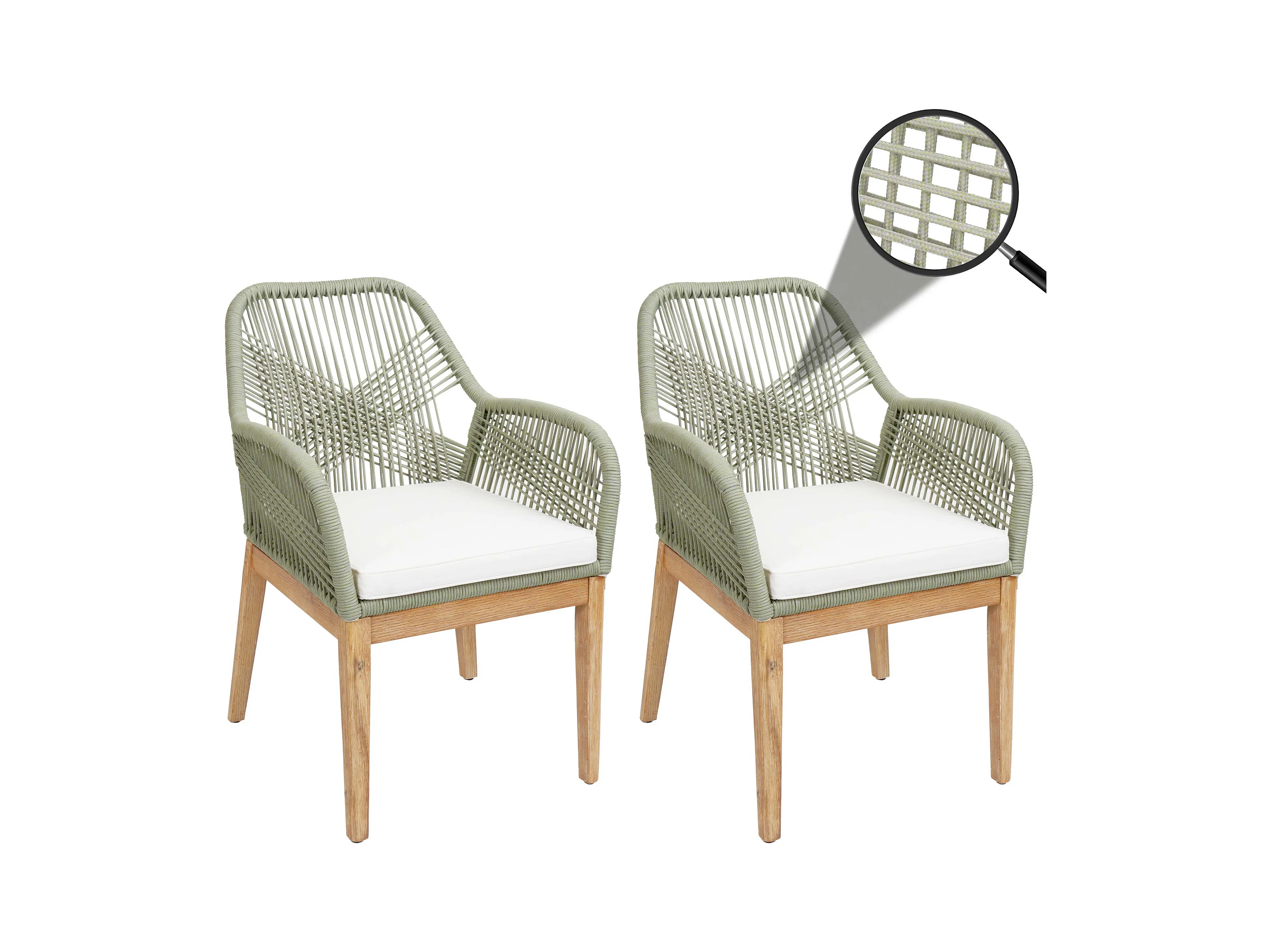 Krzesło ogrodowe MCW-H56b (zestaw 2 sztuk), zielony poduszki kremowy