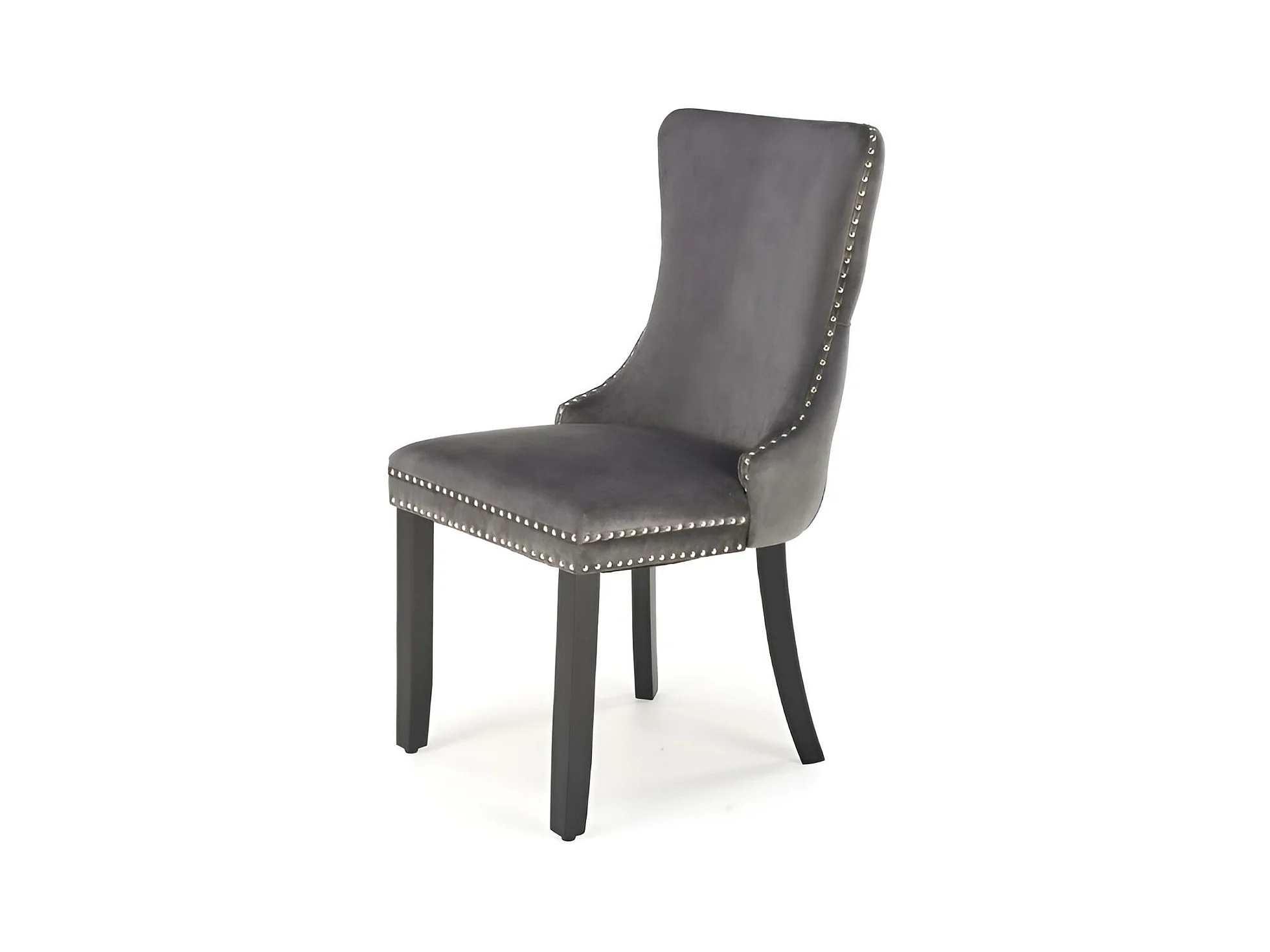 Zestaw 2 krzeseł jadalnianych z szarej tkaniny szenilowej z oparciem i ozdobnymi gwoździami, drewniane nogi