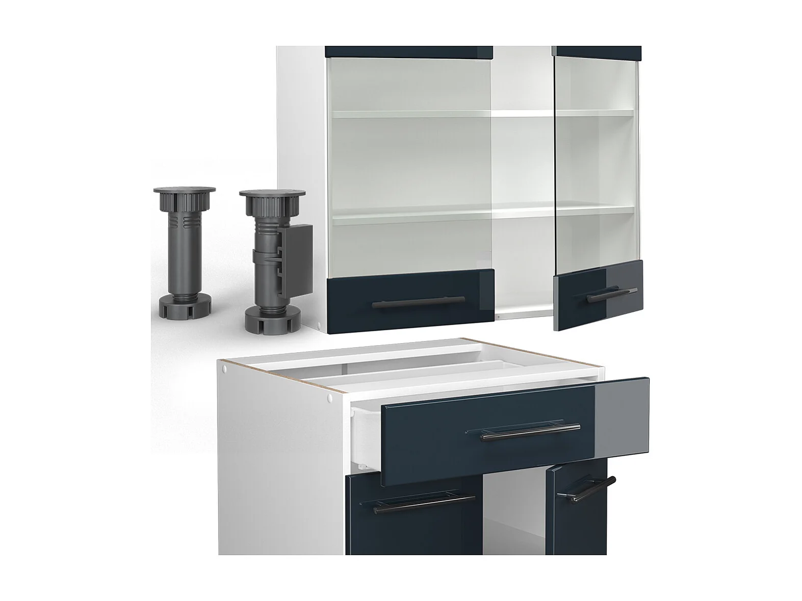 Kuchnia pojedyncza ciemnoniebieski wysoki połysk/biały 140x46x81.6 fame-line