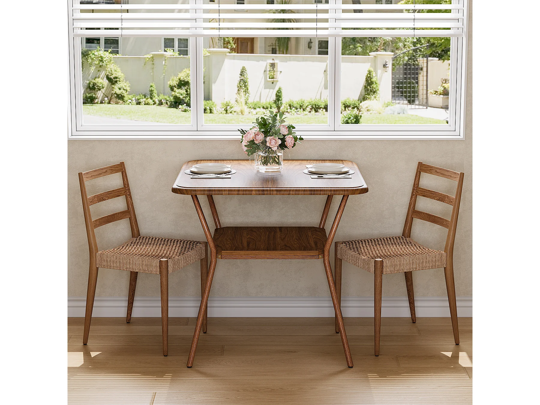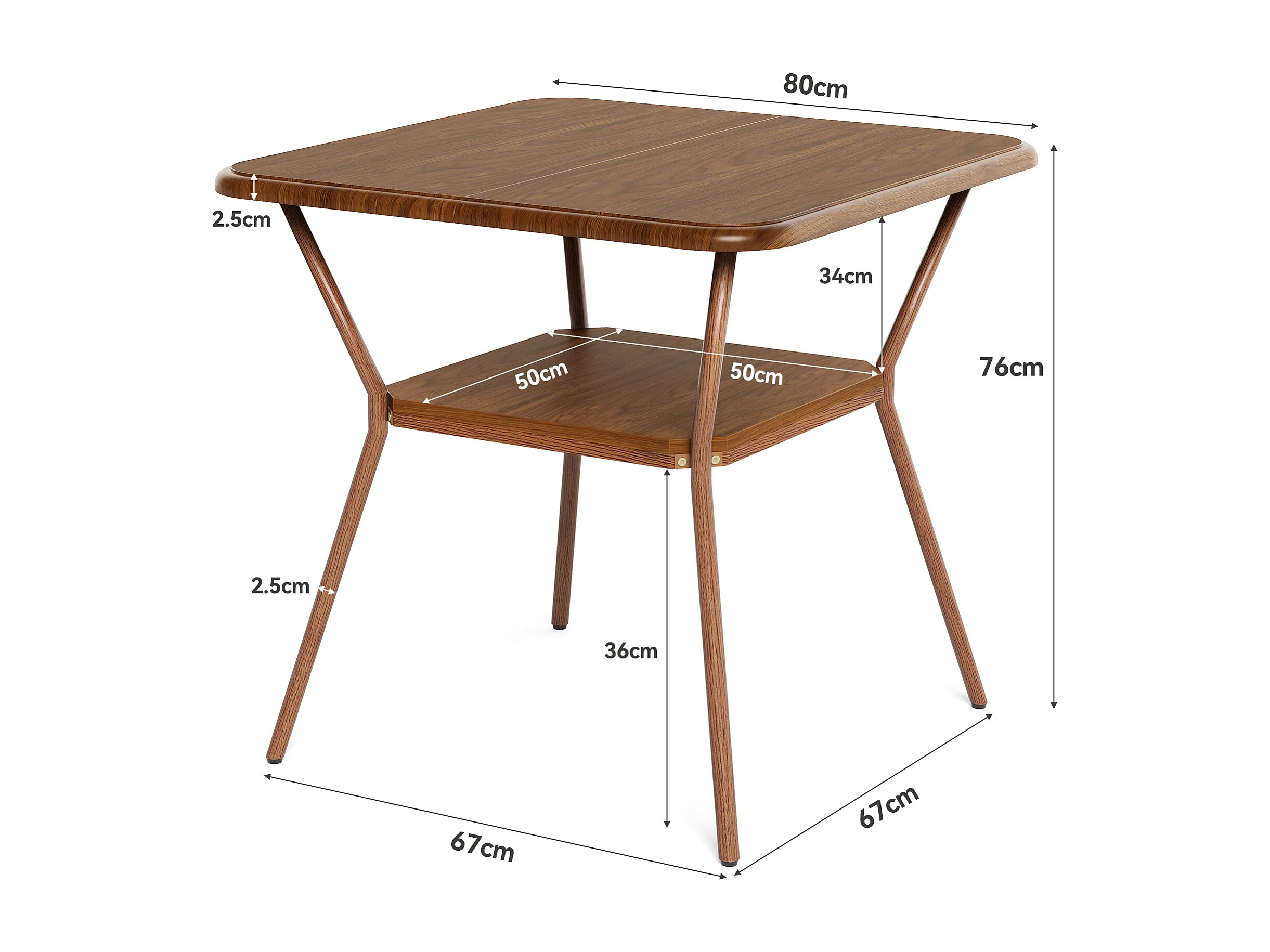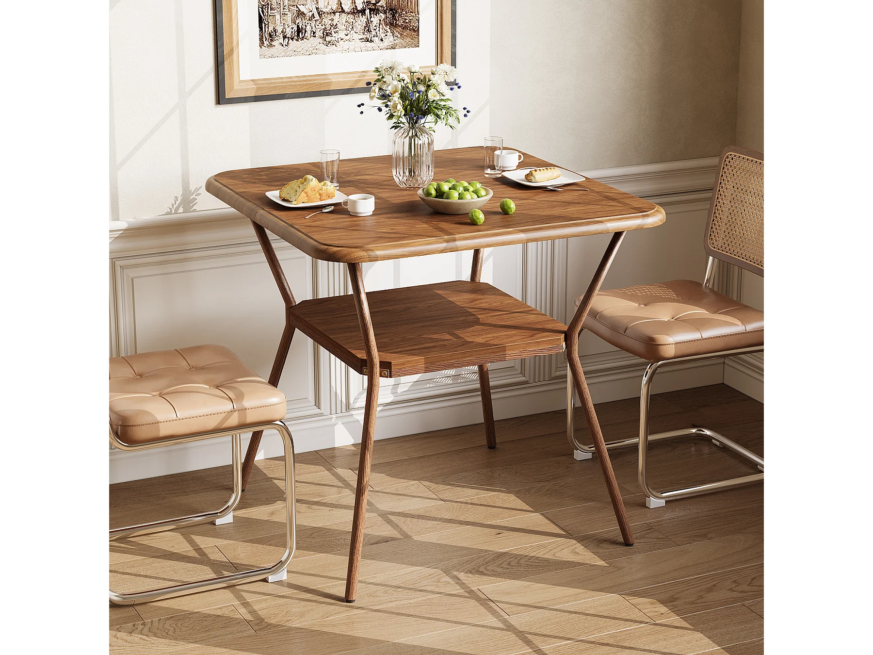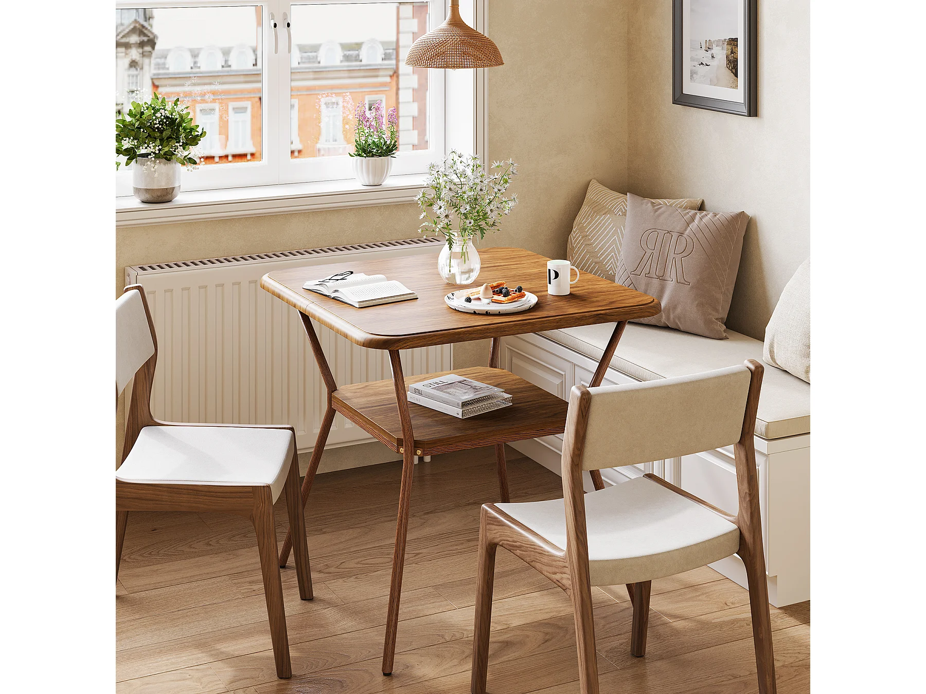 Kwadratowy stół jadalny dla 2-4 osób, 2-poziomowa półka, mały stolik do jadalni, spiżarnia