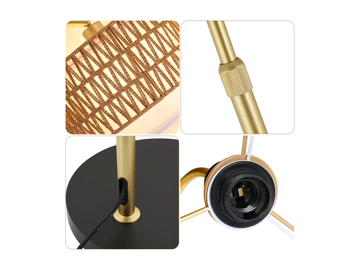 Lampa podłogowa Nettlife Boho Rattan – ściemnialna lampa łukowa z pilotem, dioda LED E27, styl vintage, wysokość 165–180 cm, obrót 350°, kolor złoty