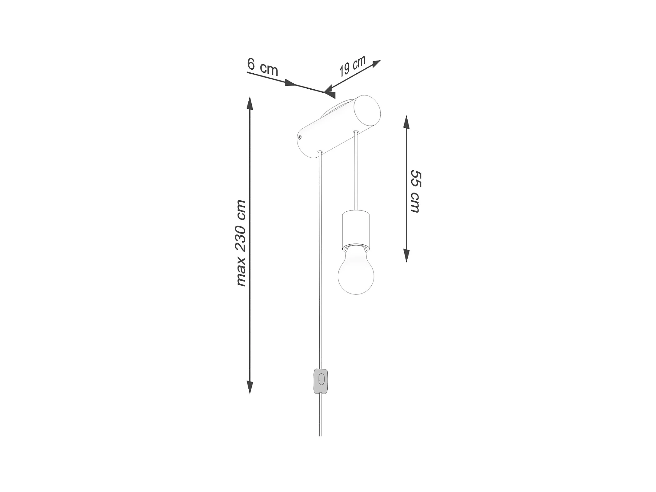Lampa Ścienna Loft Nimbi, Drewno - 1 Źródło - L.6 X H.55 Cm - Naturalne Drewno/Biały/Czarny