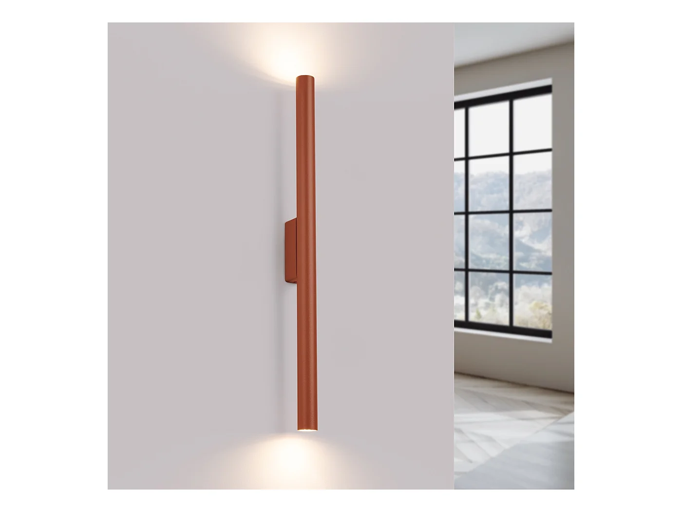 Lampa Ścienna Minimalistyczny Karbon, Aluminium - 2 Źródło - L.6.5 X H.20 Cm - Ochra Czerwona
