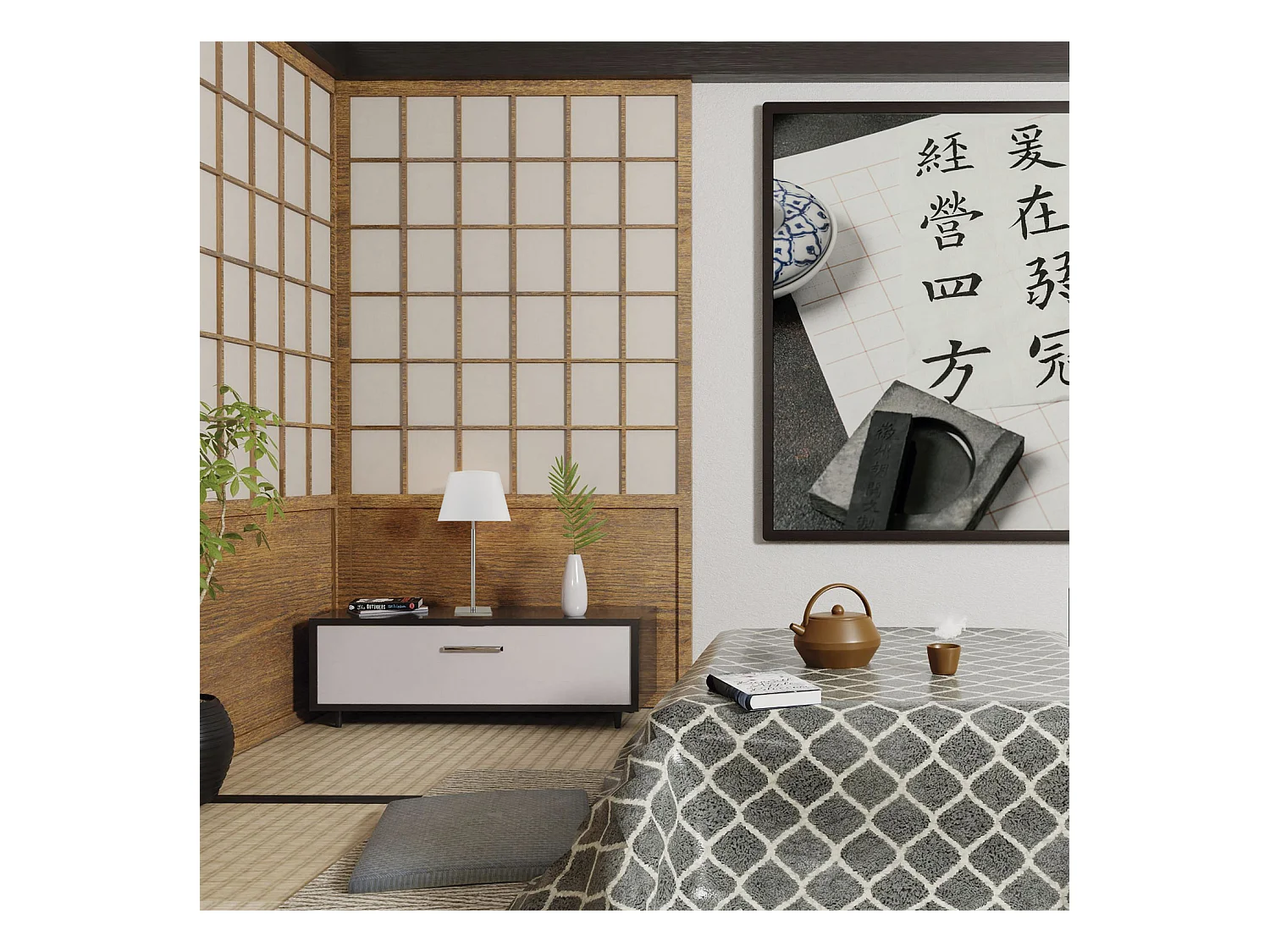 Stolik kawowy KYRIA - 1 szuflada i obrotowy blat - MDF - Kolor: biały i dębowy.